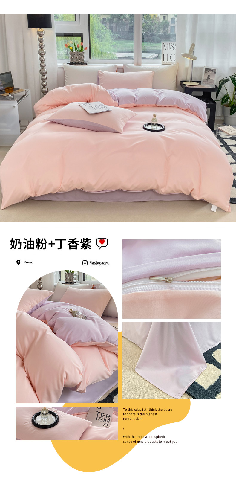 当前位置: 91家纺网 > 商品网购 > 床品套件 > 四件套 > 化纤普通四件套 > 芷凡家纺 2024新款亲肤棉纯色双拼四件套 奶油粉+丁香紫
