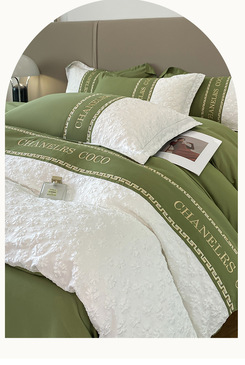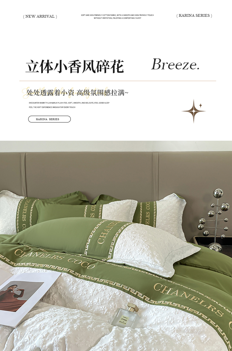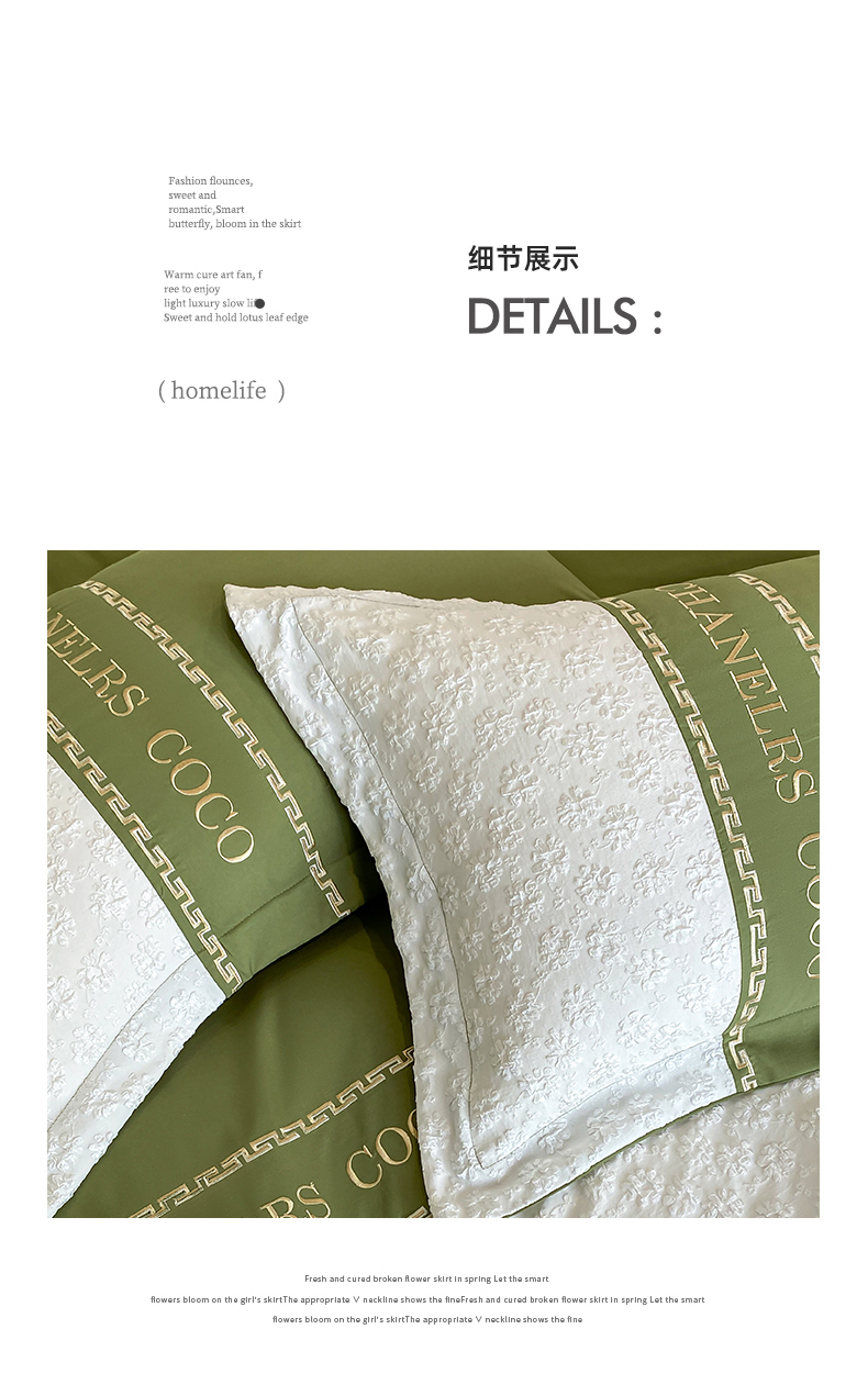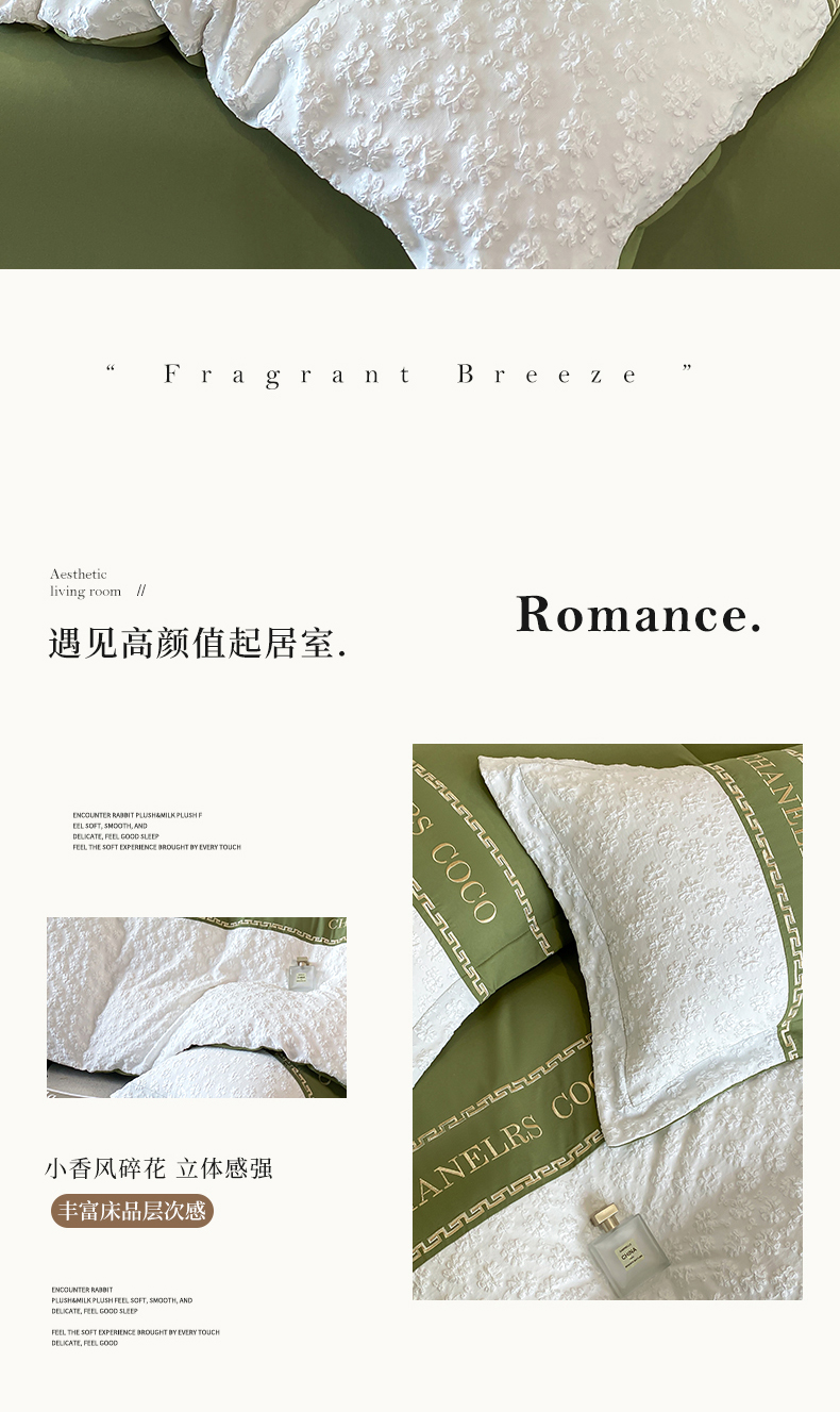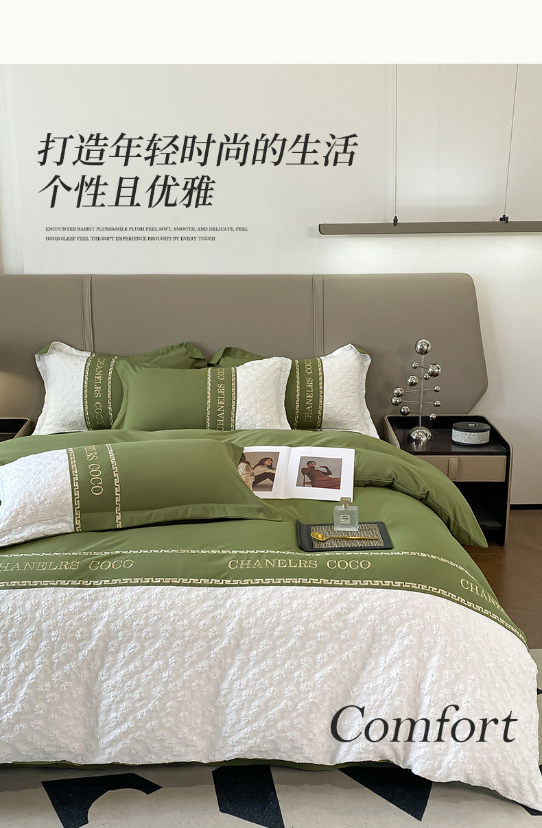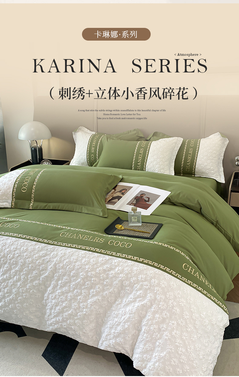 苏源家居 2024新款亲肤棉拼接立体浮雕碎花公主风四件套-卡琳娜系列 卡琳娜-抹茶绿