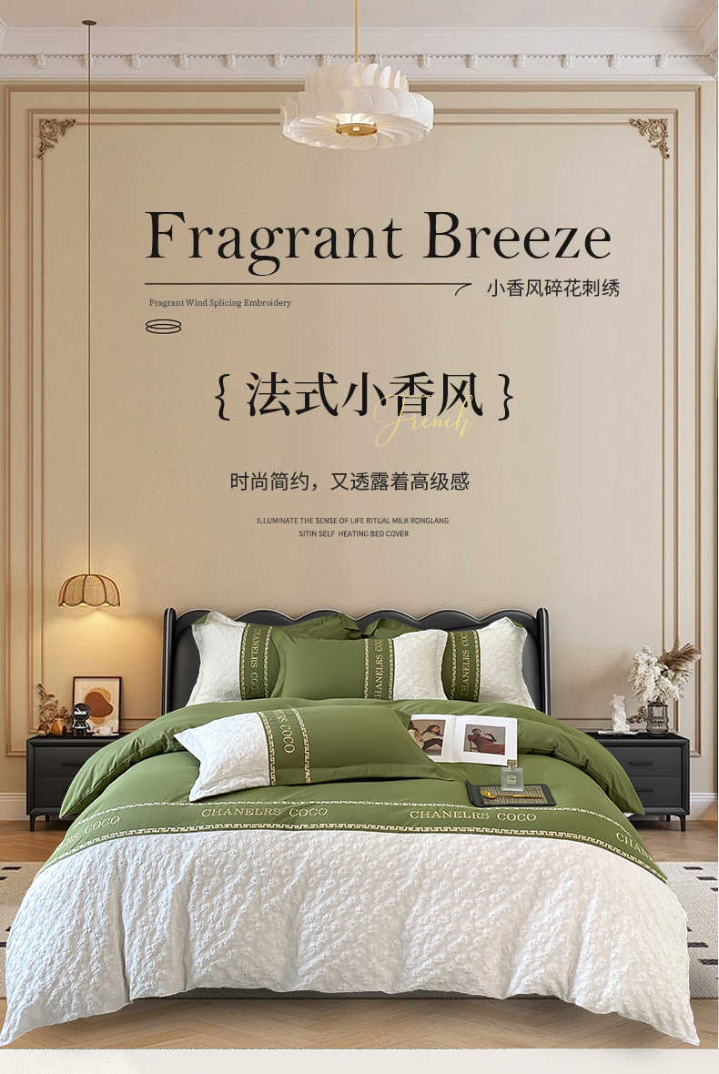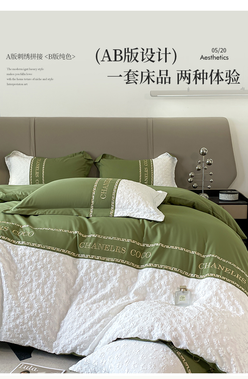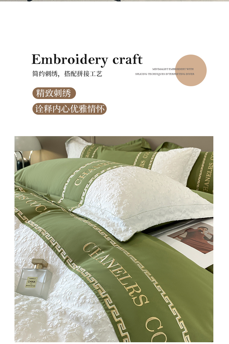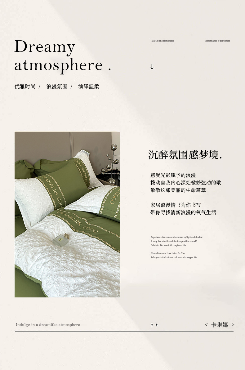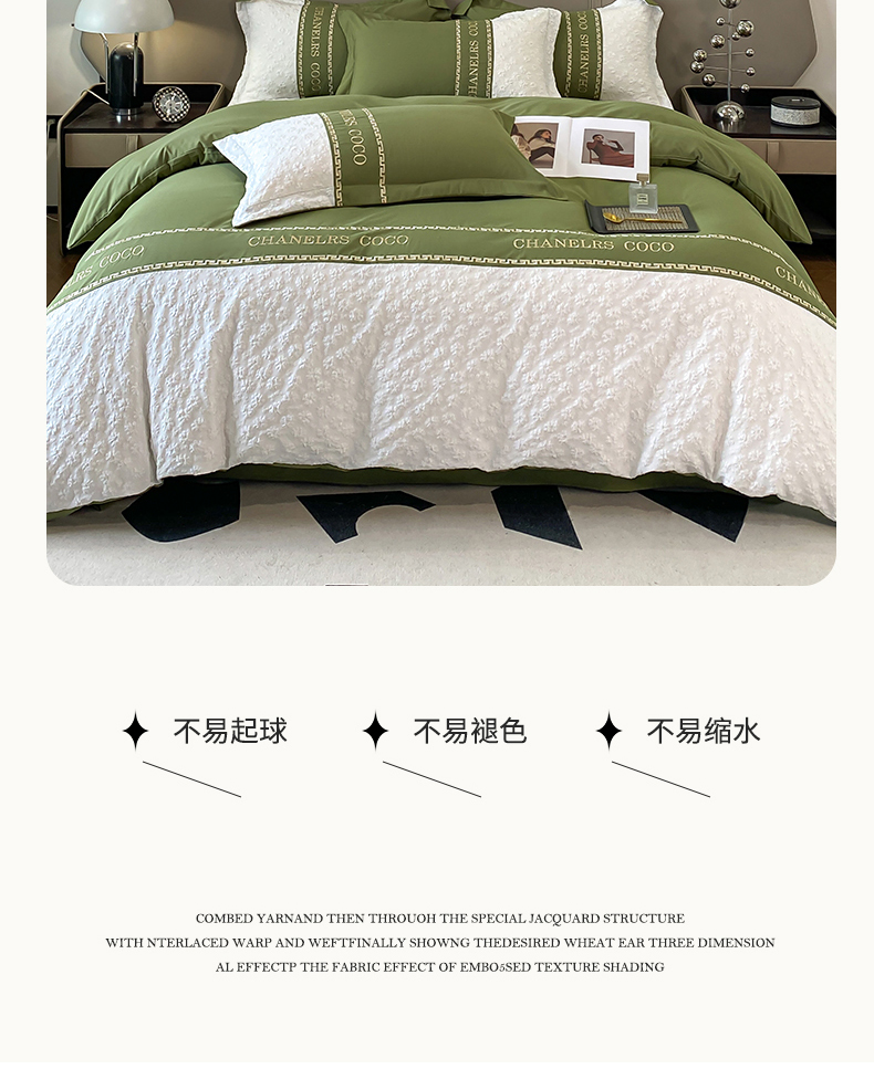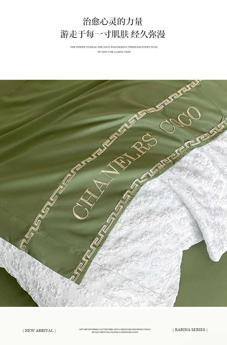 苏源家居 2024新款亲肤棉拼接立体浮雕碎花公主风四件套-卡琳娜系列 卡琳娜-抹茶绿
