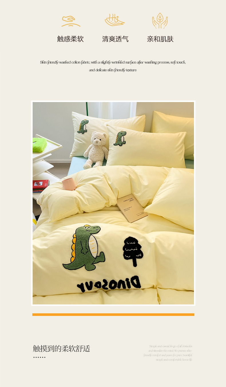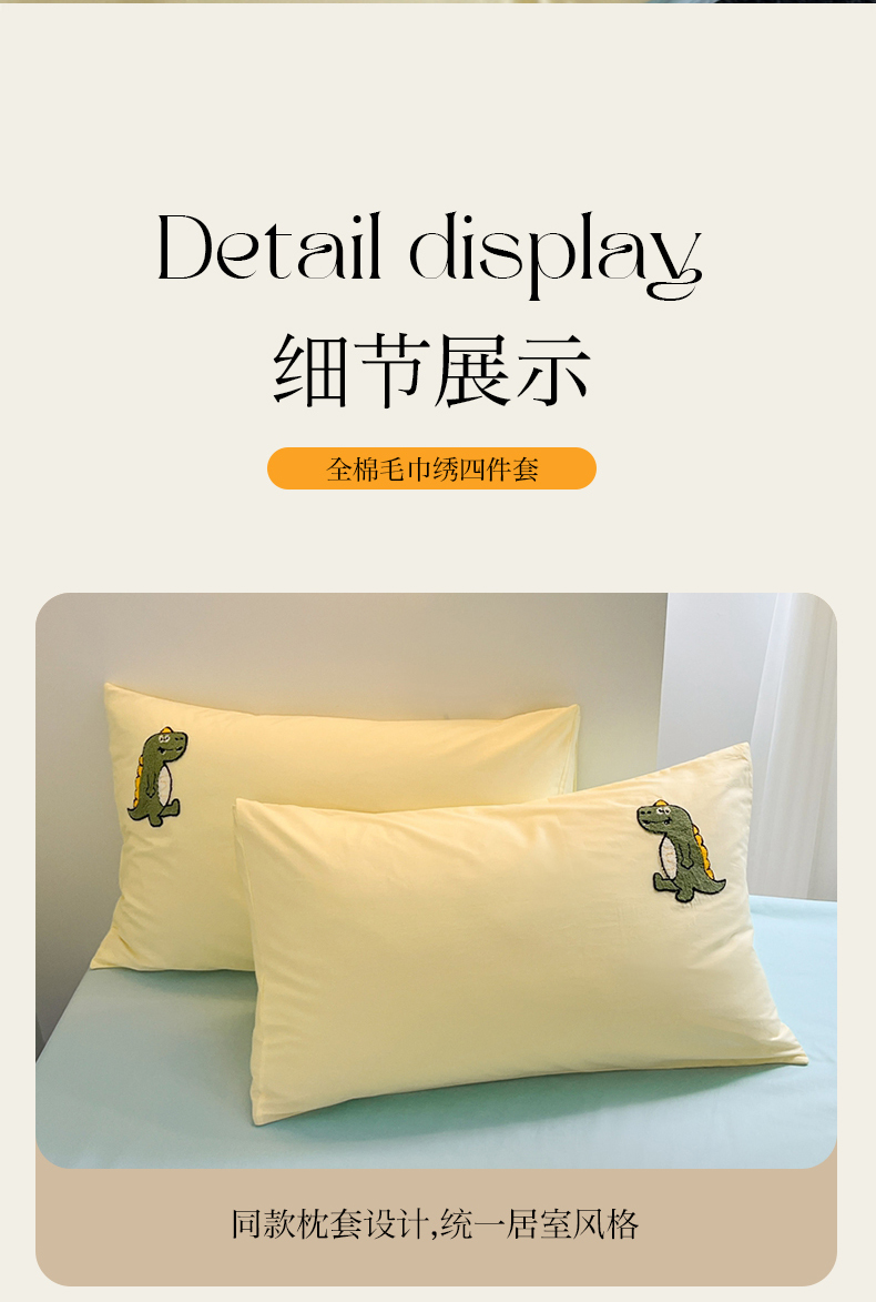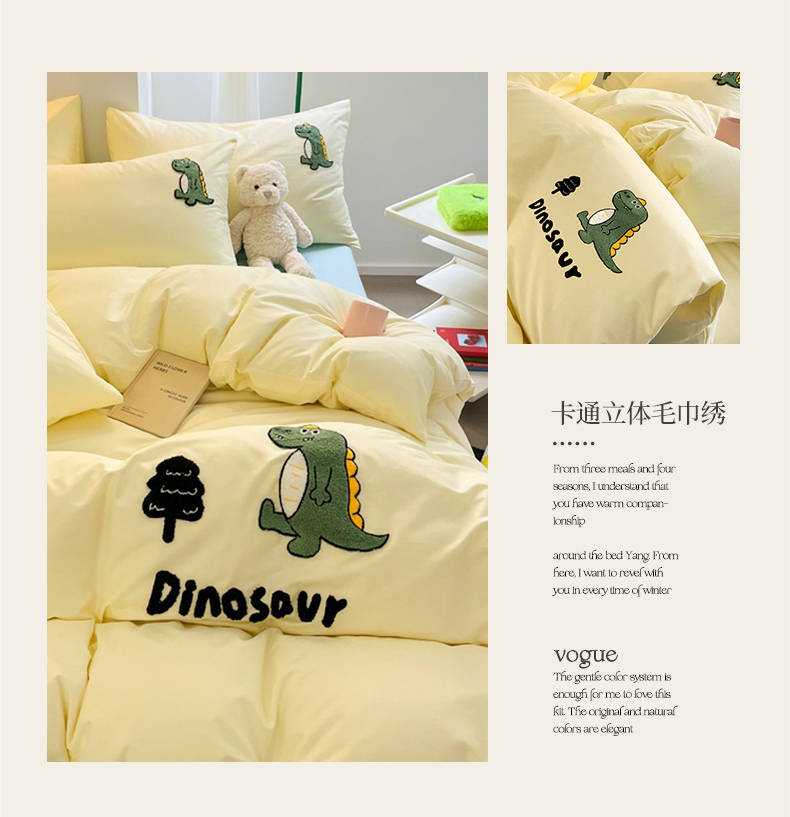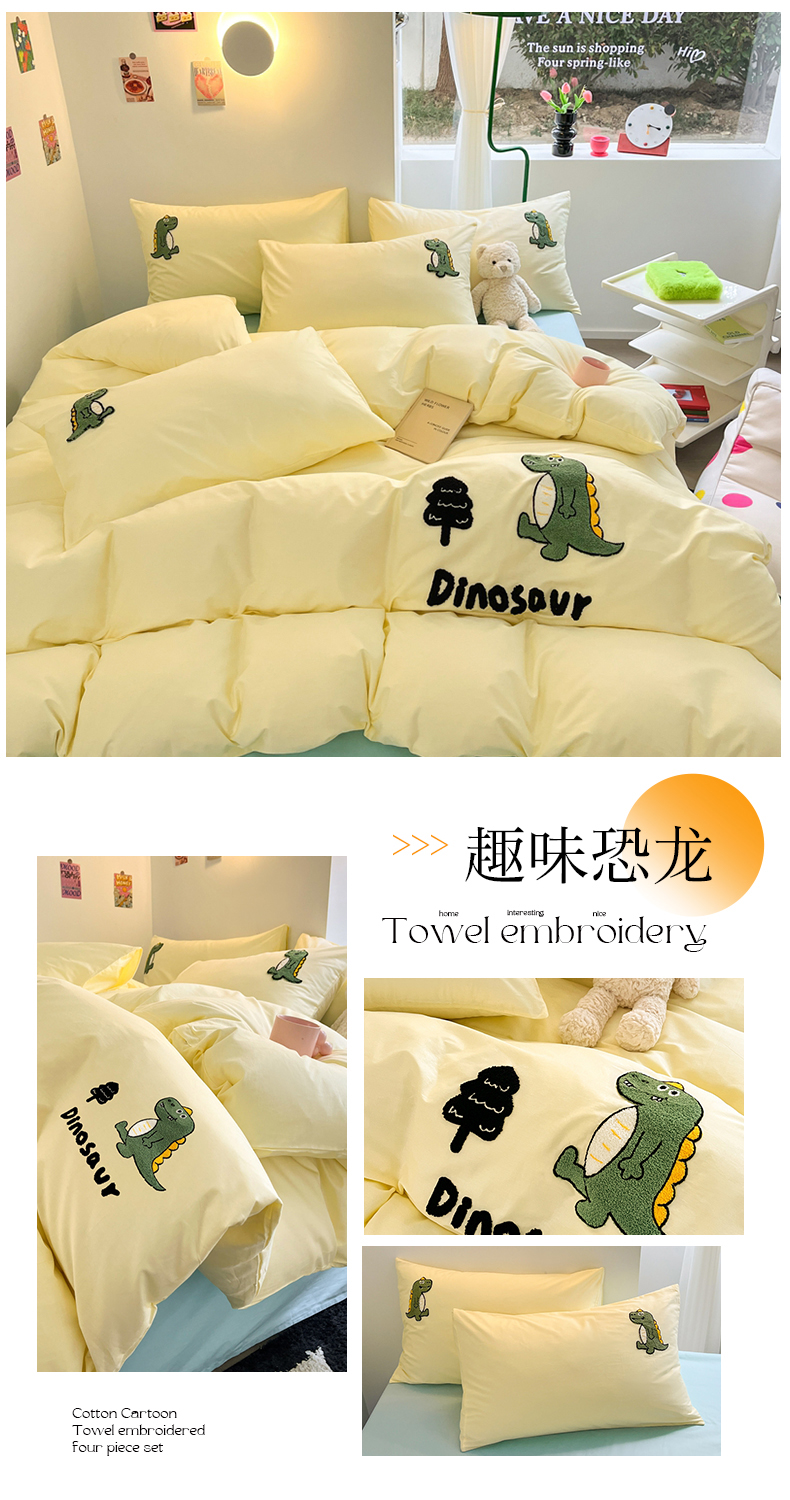 商品名称:呗旺鹿 2024新款全棉13372毛巾绣四件套 趣味恐龙