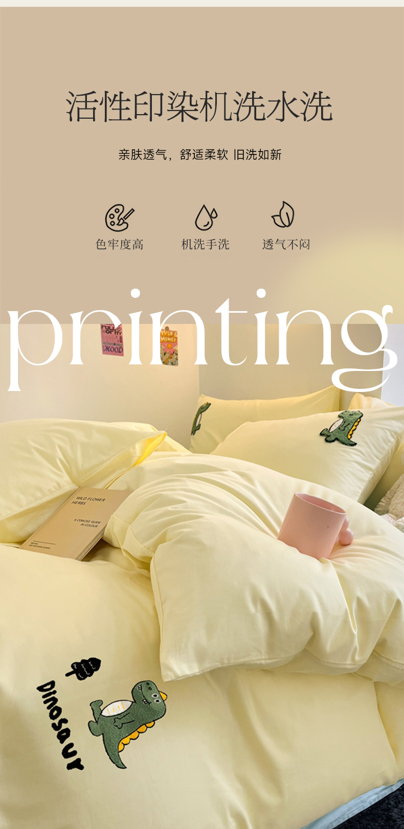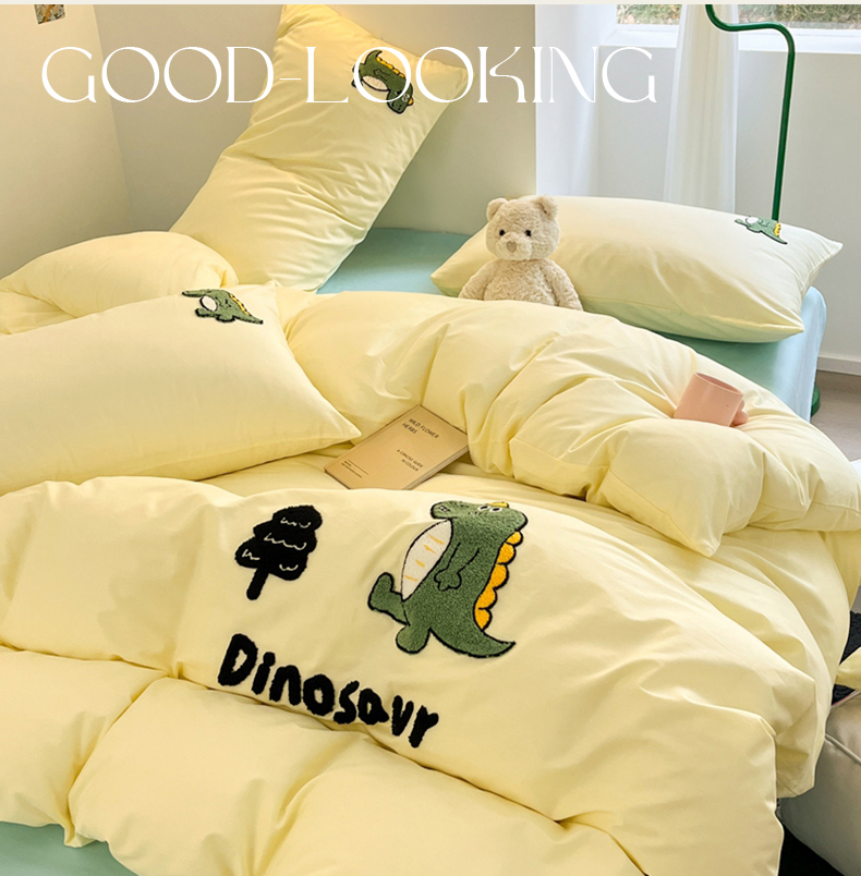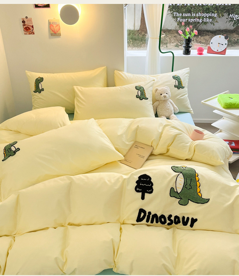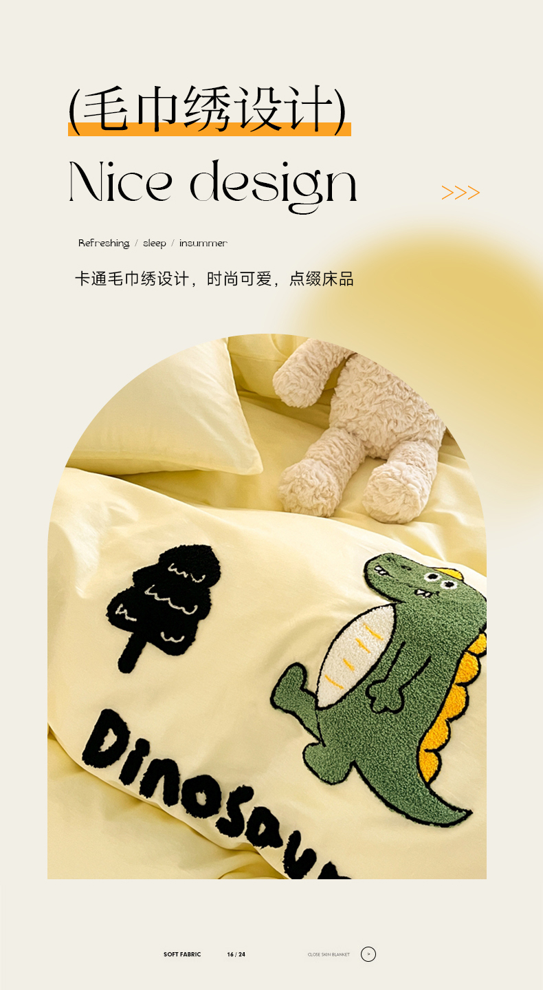 商品名称:呗旺鹿 2024新款全棉13372毛巾绣四件套 趣味恐龙