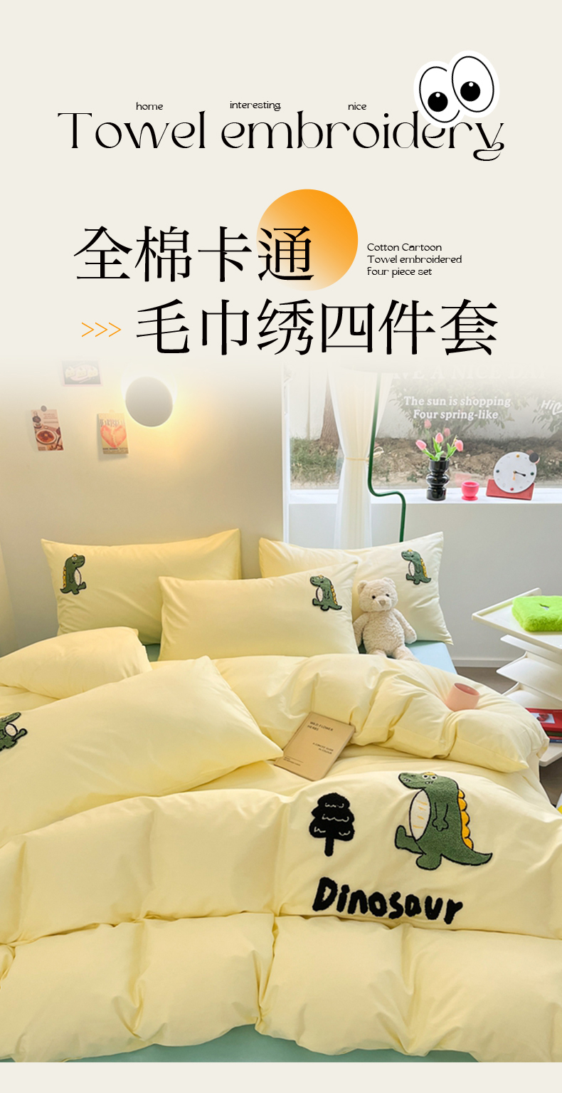 呗旺鹿 2024新款全棉13372毛巾绣四件套 趣味恐龙