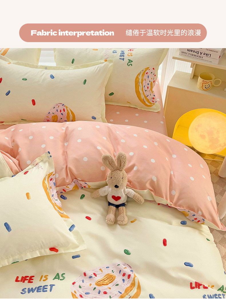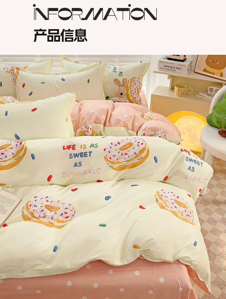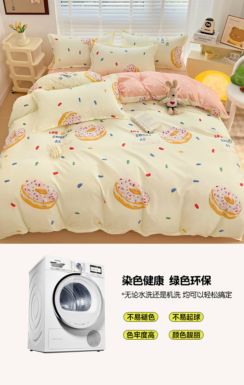 当前位置: 91家纺网 > 商品网购 > 床品套件 > 四件套 > 水洗棉四件套 > 楠沐家纺 2025新款亲肤柔软水洗棉磨毛印花四件套 甜甜圈