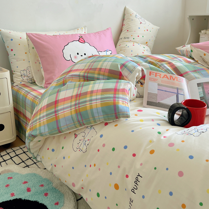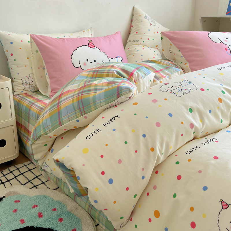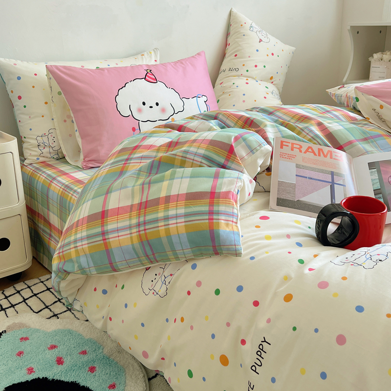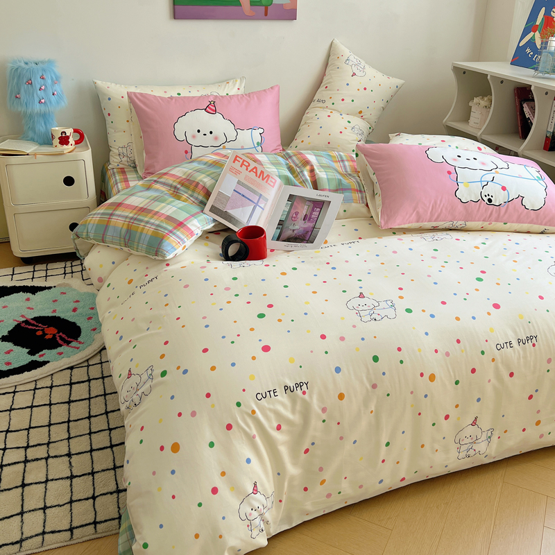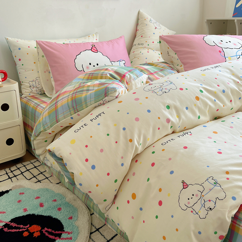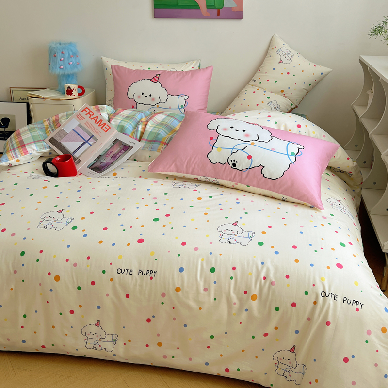 桃喜 2024新款全棉卡通数码印花混搭系列四件套 波点狗狗
