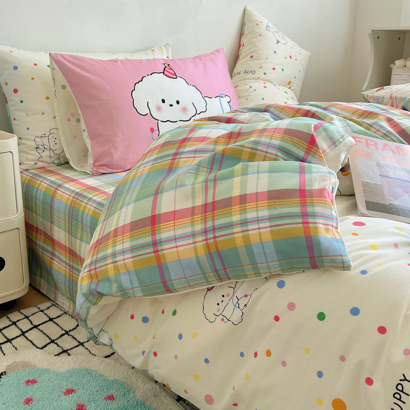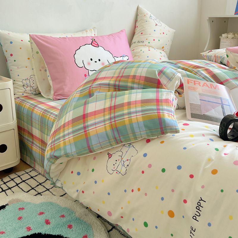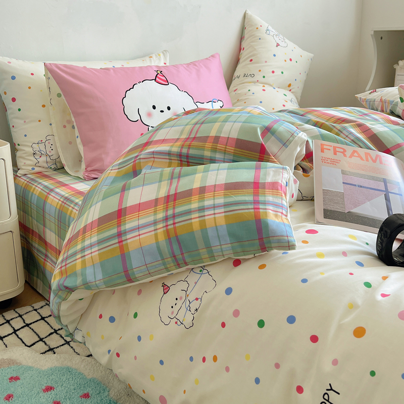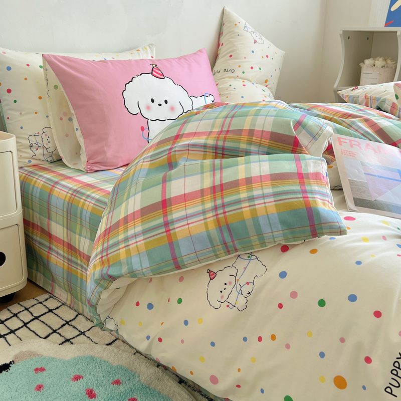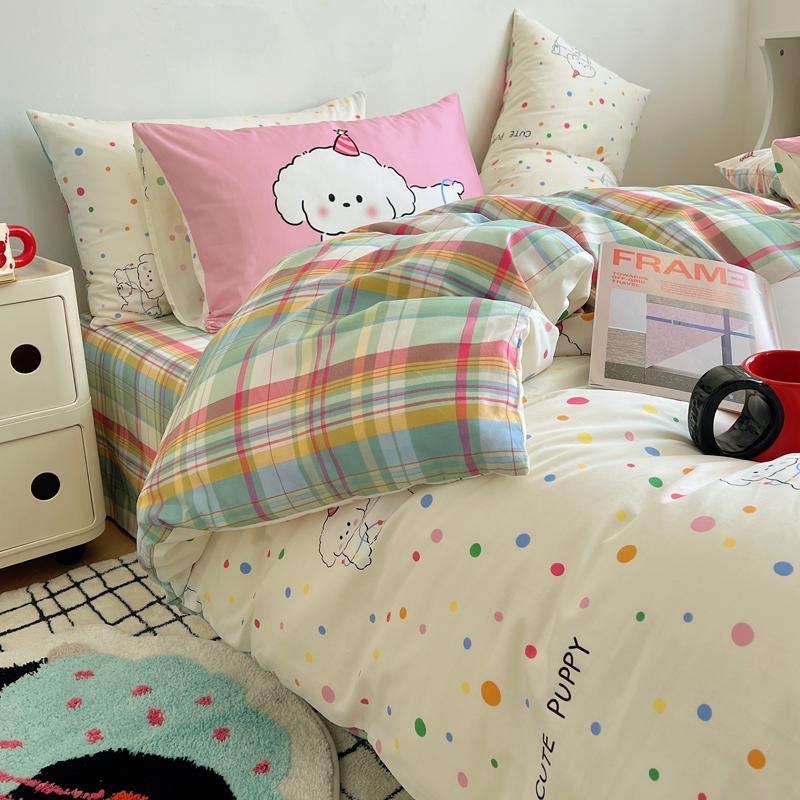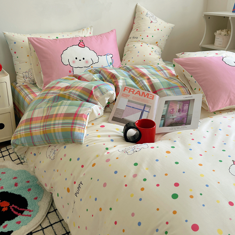 桃喜 2024新款全棉卡通数码印花混搭系列四件套 波点狗狗
