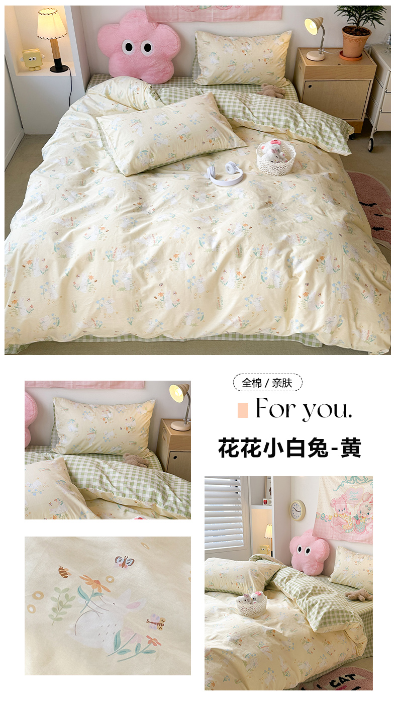 商品名称:昔可 2024新款全棉小清新印花四件套 花花小白兔 黄底