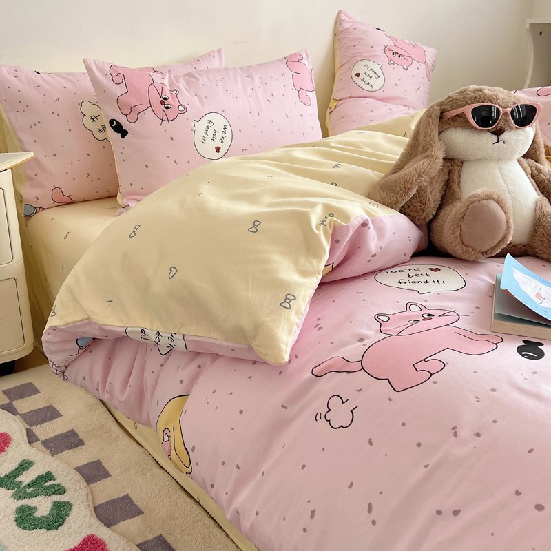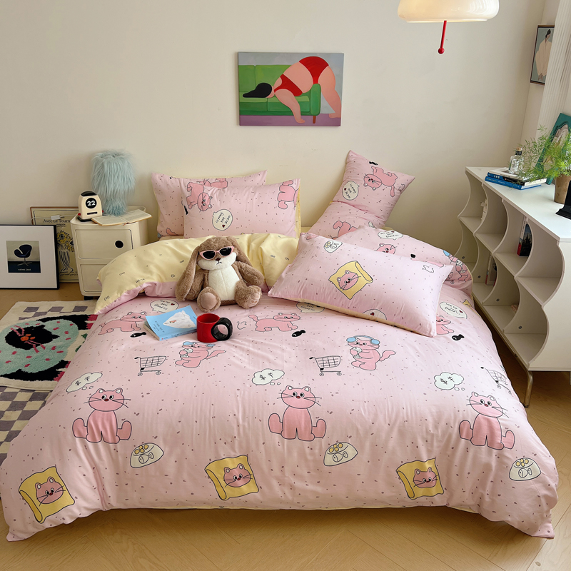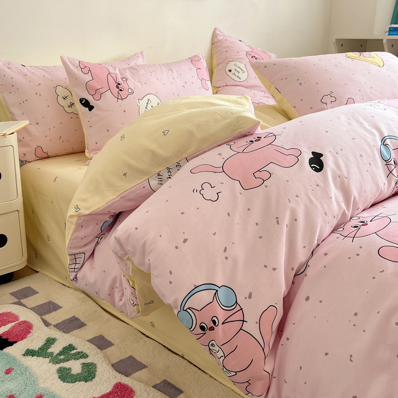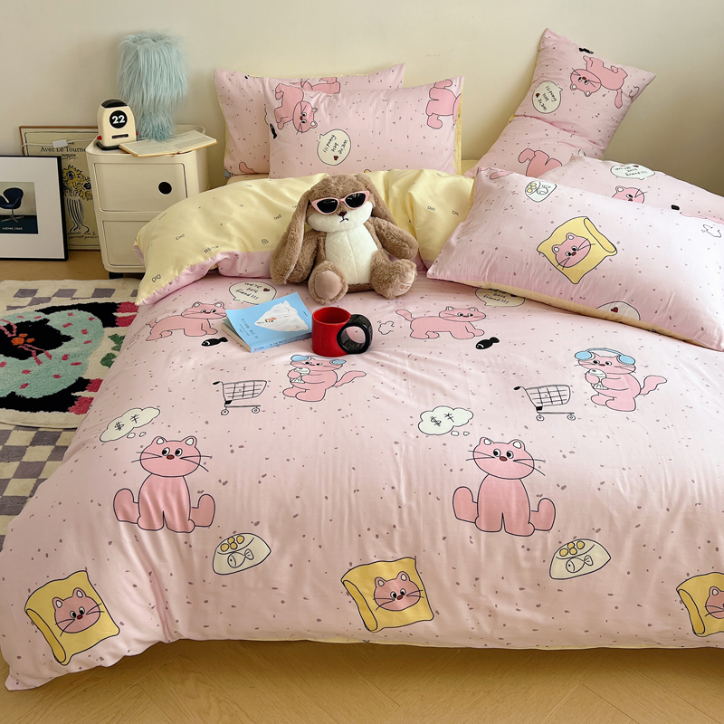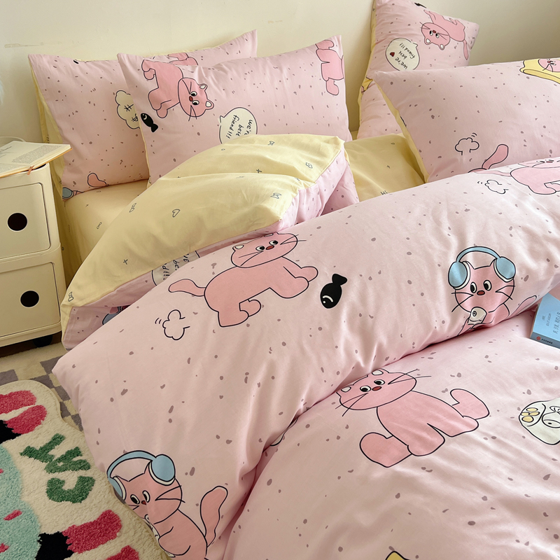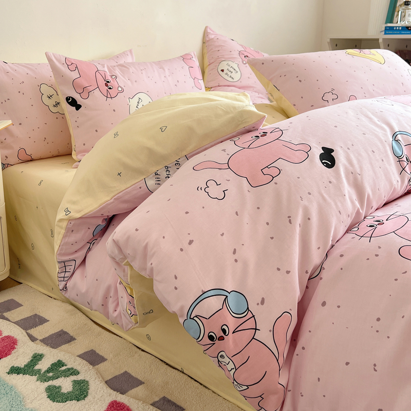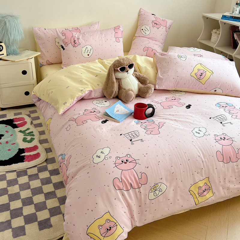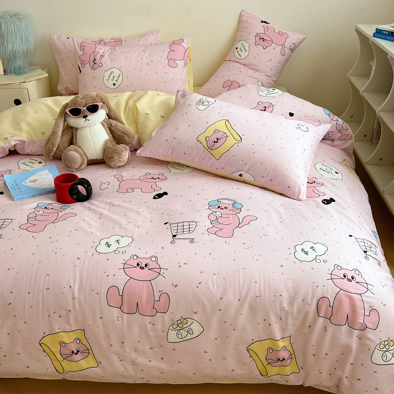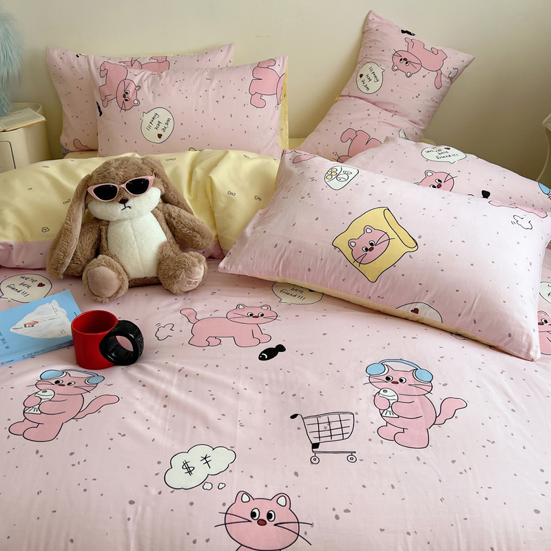 商品名称:桃喜 2024新款40支13372全棉卡通系列四件套 摸鱼猫
