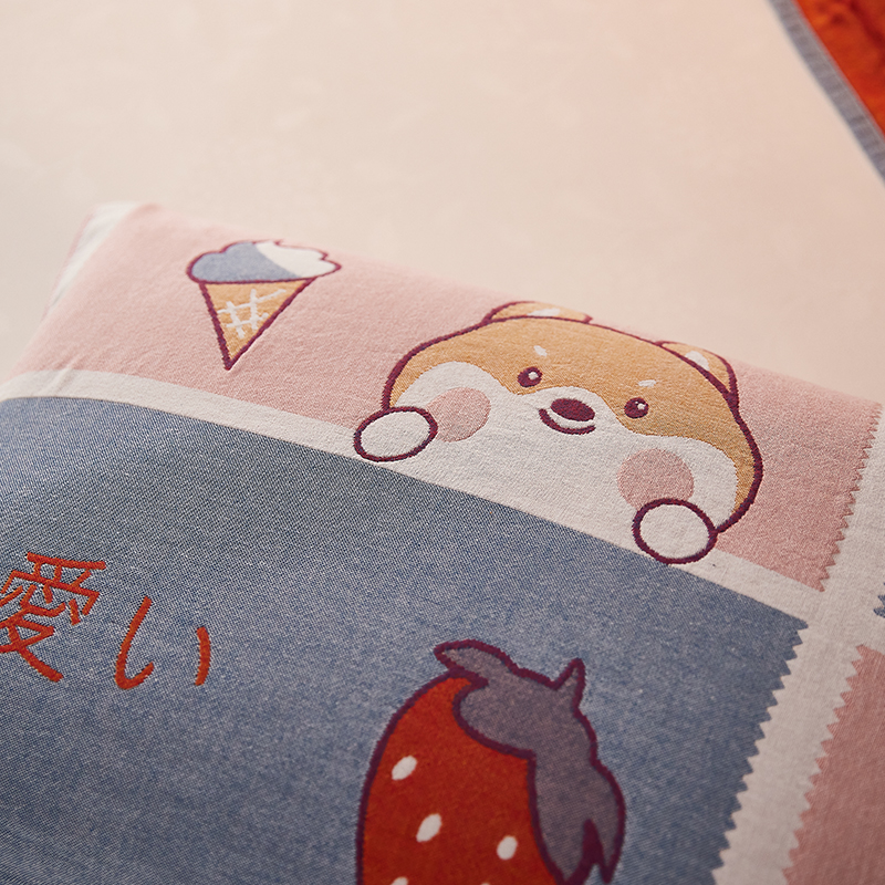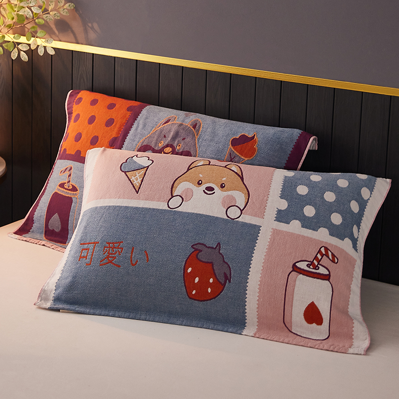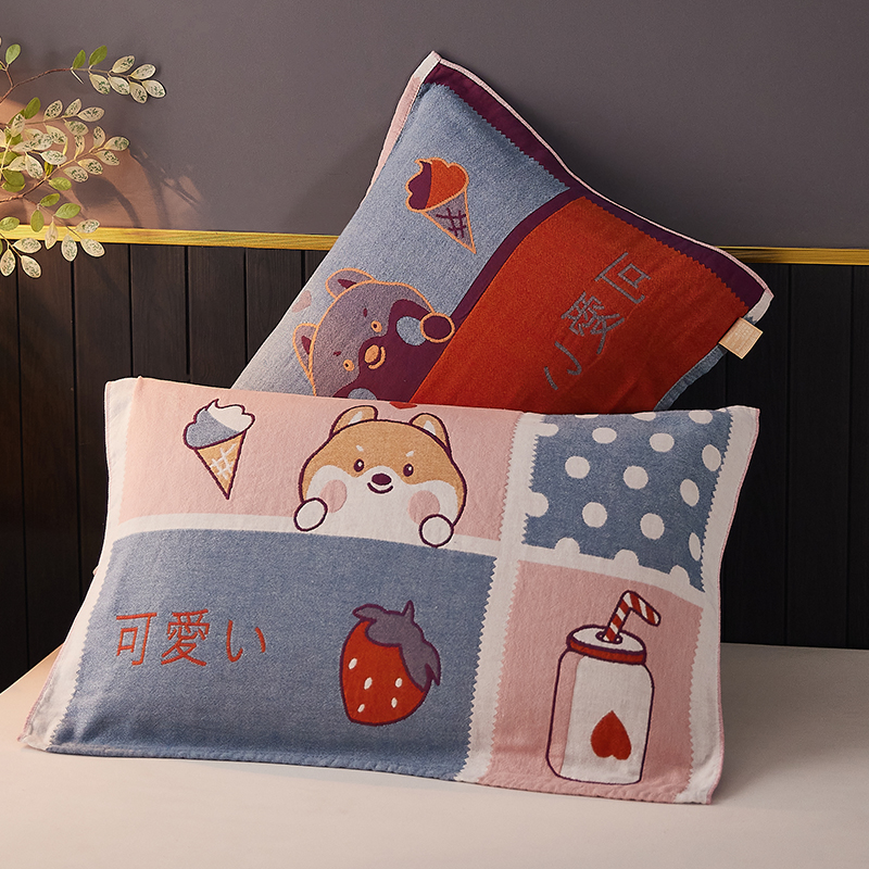 • 91家纺网 家纺一手货源 找家纺 爱港家纺 2024新款新疆棉水洗色织纱布单人情侣枕巾一对装 可爱狗