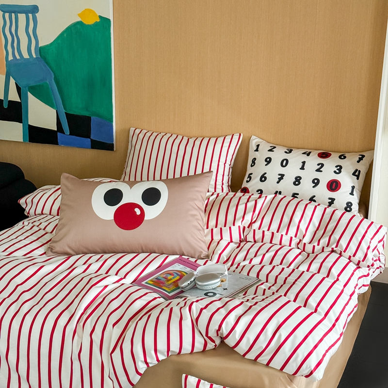 圆岛家纺 2024新款春夏40支趣味全棉数码印花四件套 大眼豆
