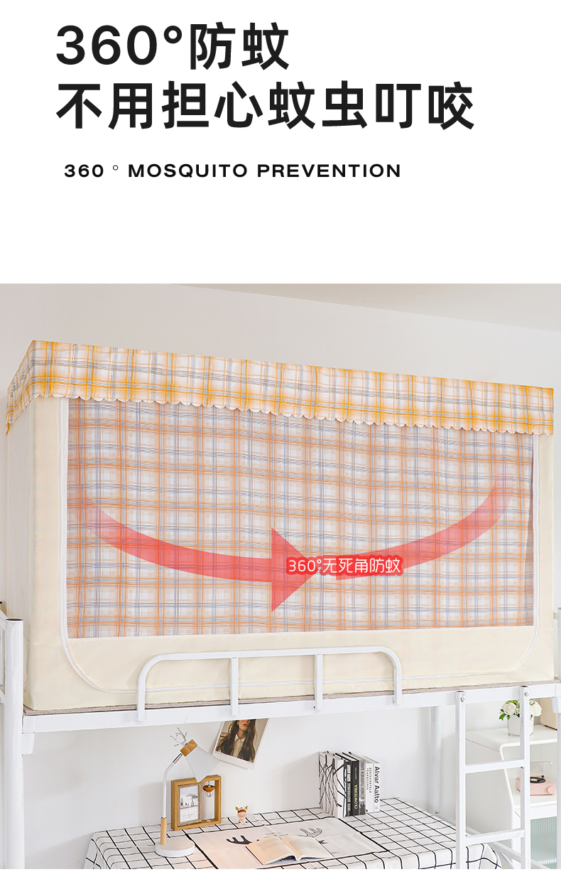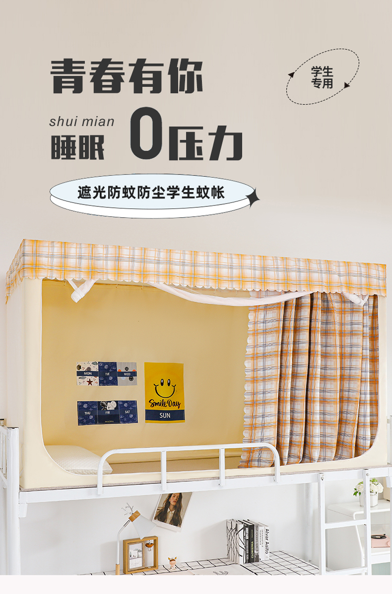 宅部落 2024新款特价款学生上下铺蚊帐强遮光床帘一体式蚊帐 格调黄