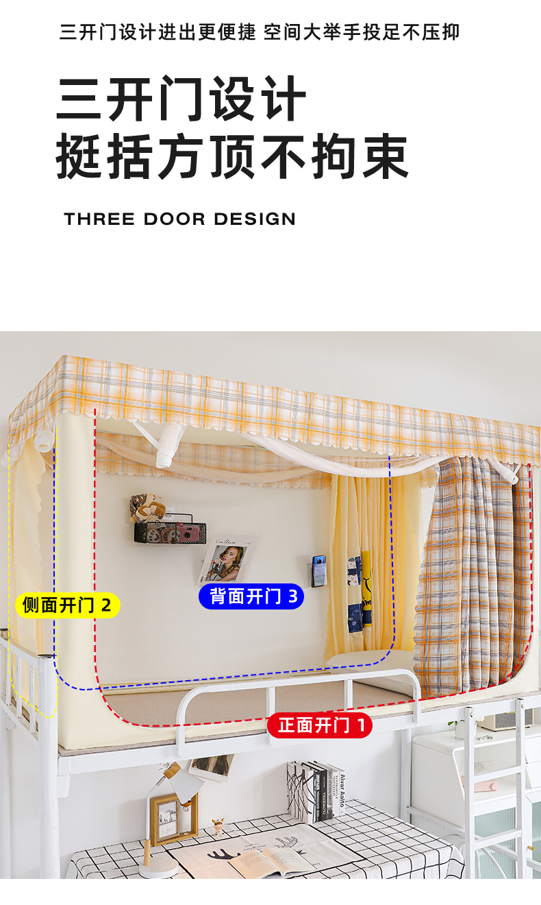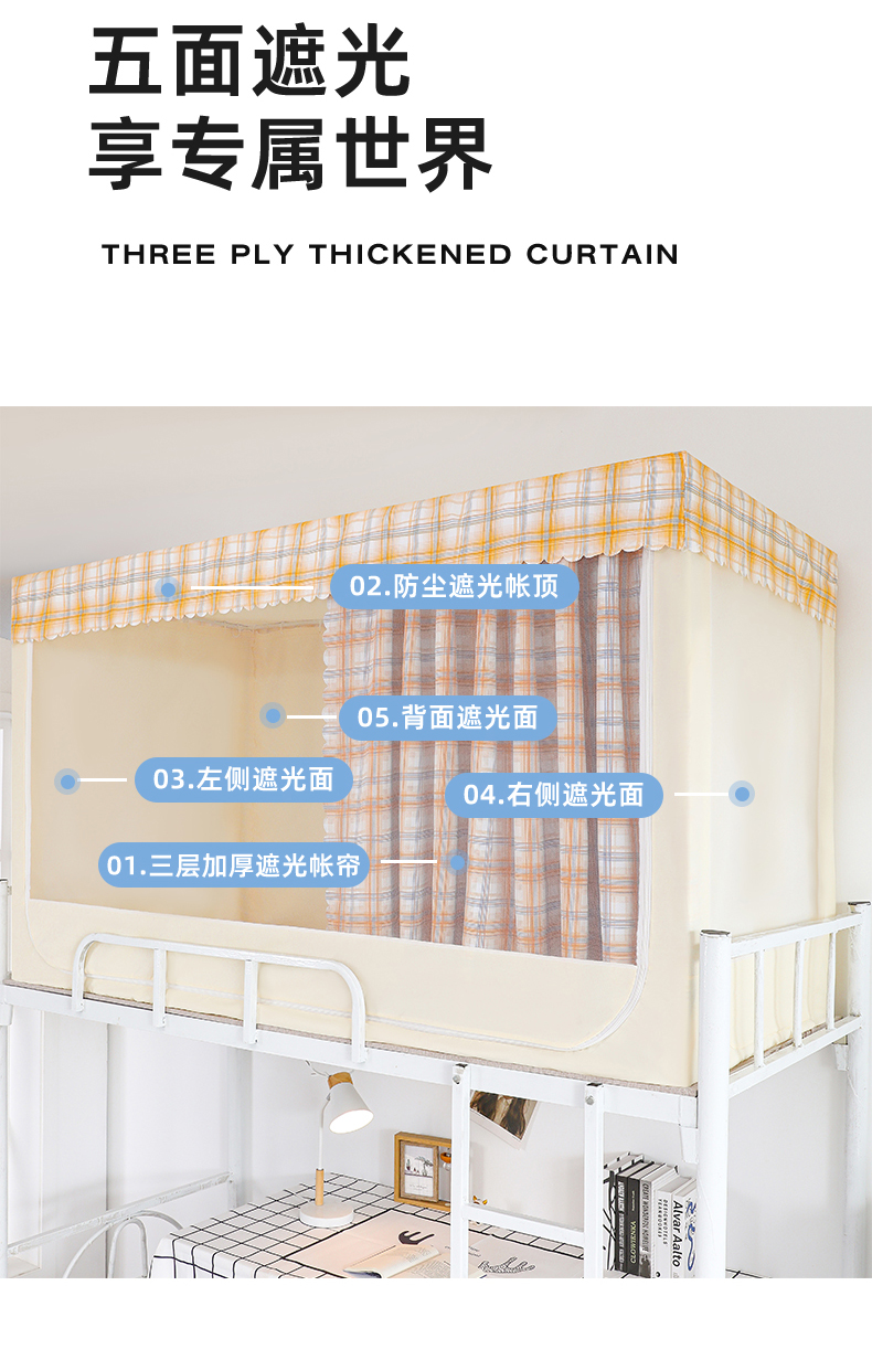 (总)宅部落 2025新款学生床帘宿舍上下铺床帘式强遮光学生蚊帐-纯色系列,纯色-藏蓝色,纯色-淡米黄,纯色-黑色,纯色-灰色,纯色-天蓝色