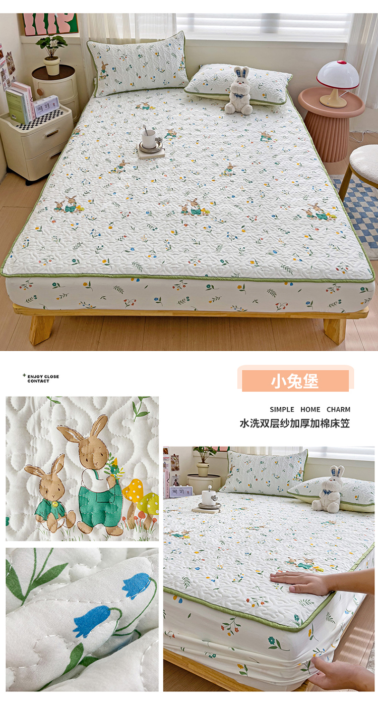 纽缦家纺 水洗双层纱加厚加棉床笠-床垫保护套 小兔堡