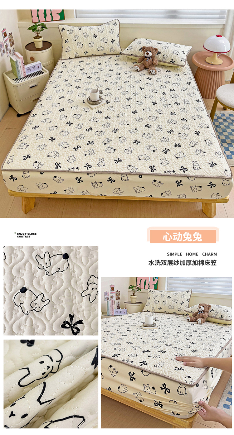 纽缦家纺 水洗双层纱加厚加棉床笠-床垫保护套 心动兔兔