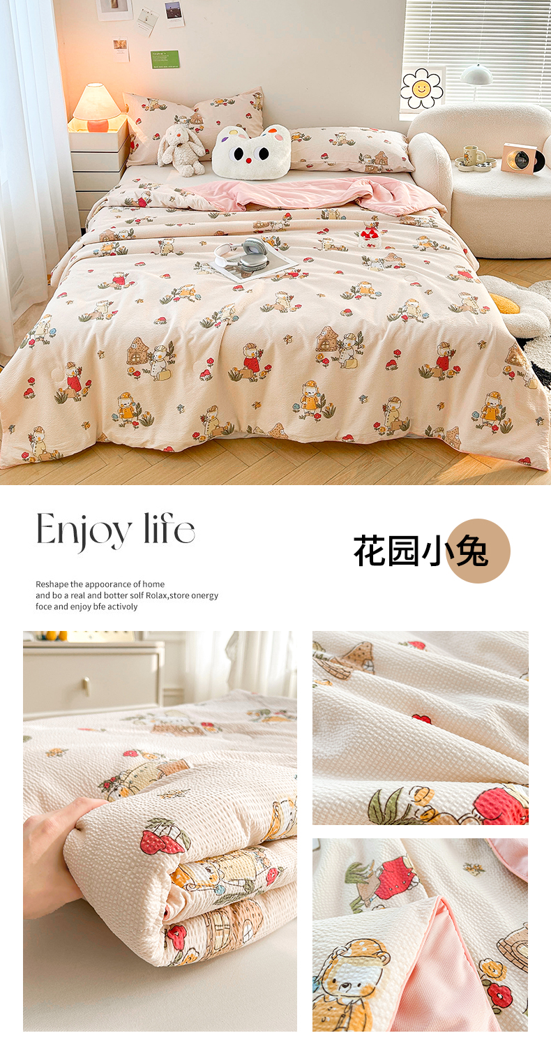 商品名称:兄弟坊 2024新款泡泡纱印花夏被 花园小兔