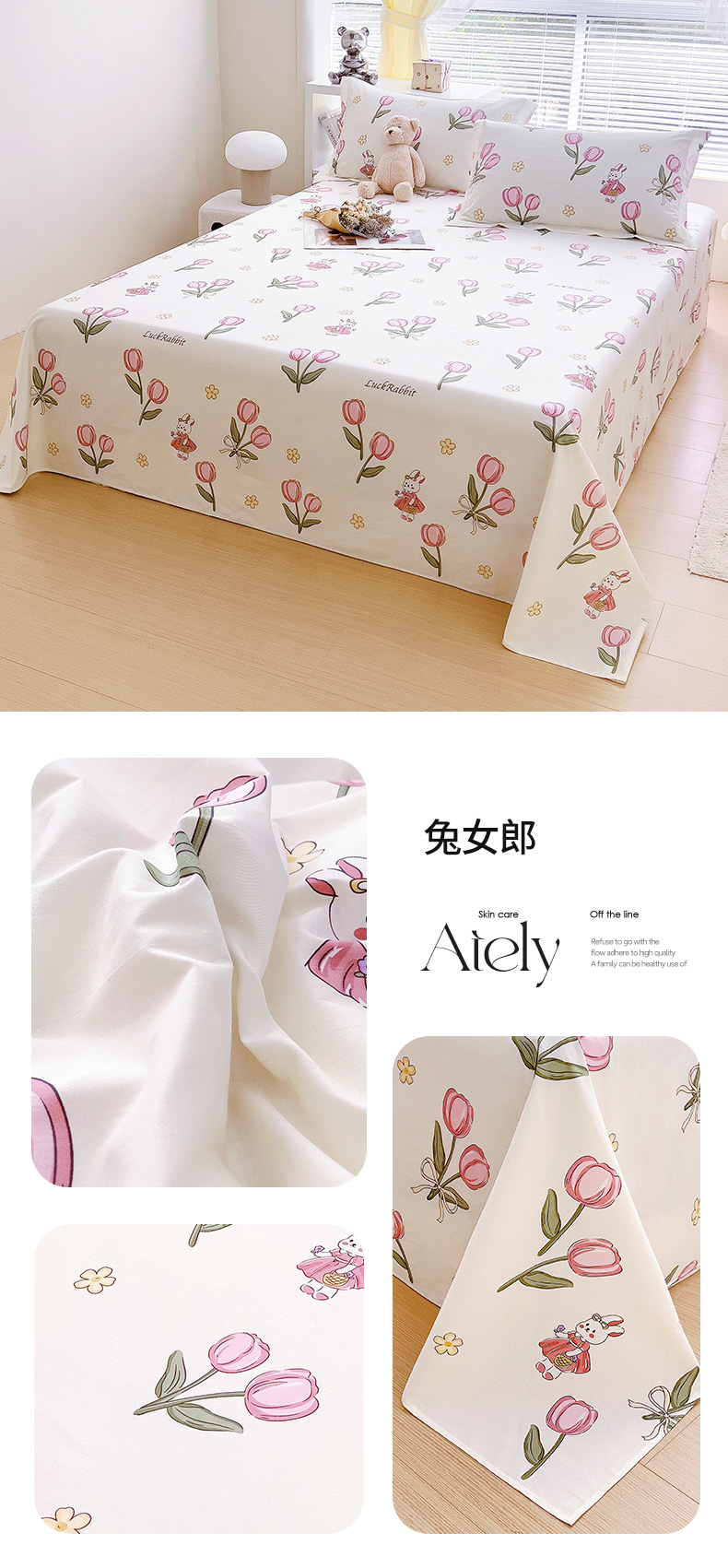 锦罗绣 2024新款13372全棉印花单品床单 兔女郎,兔女郎
