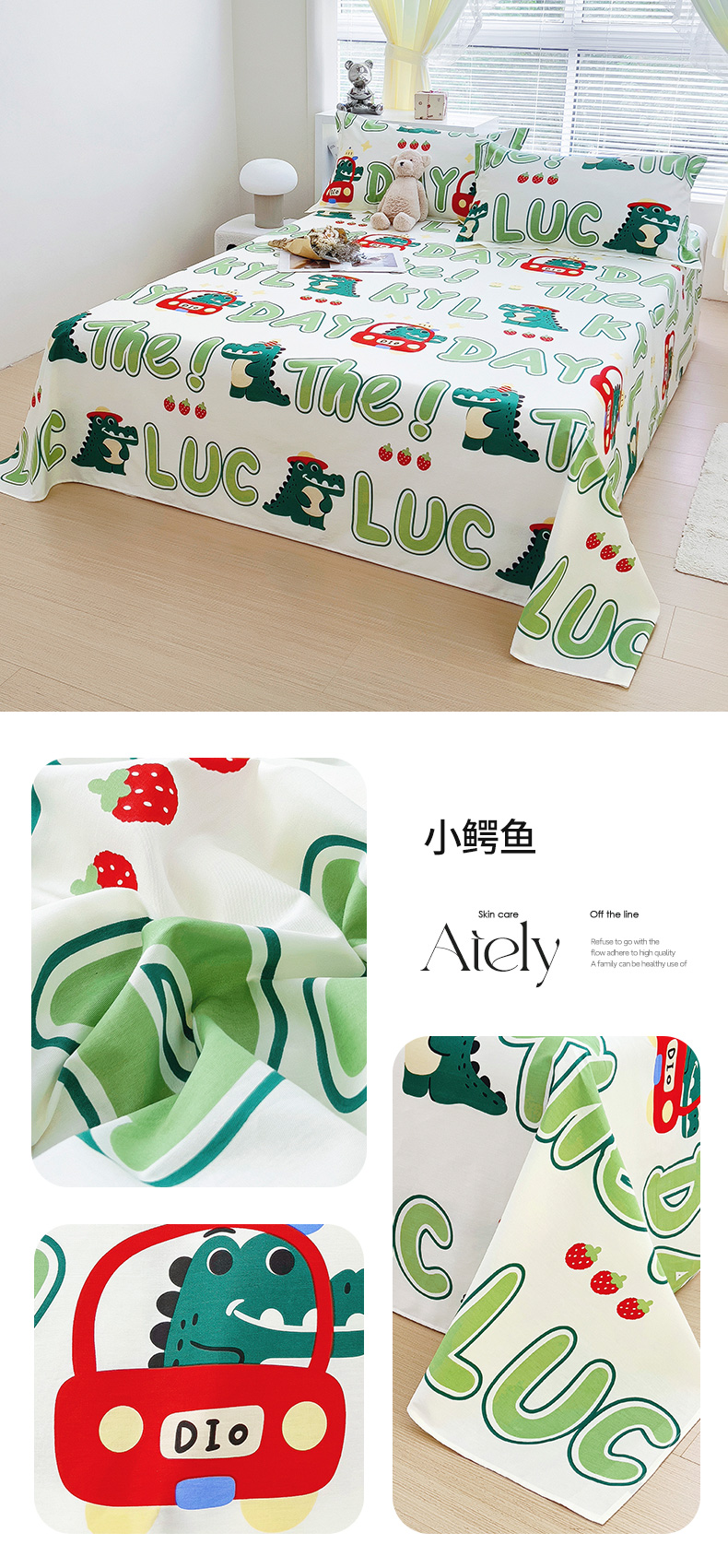 锦罗绣 2024新款13372全棉印花单品床单 小鳄鱼,小鳄鱼