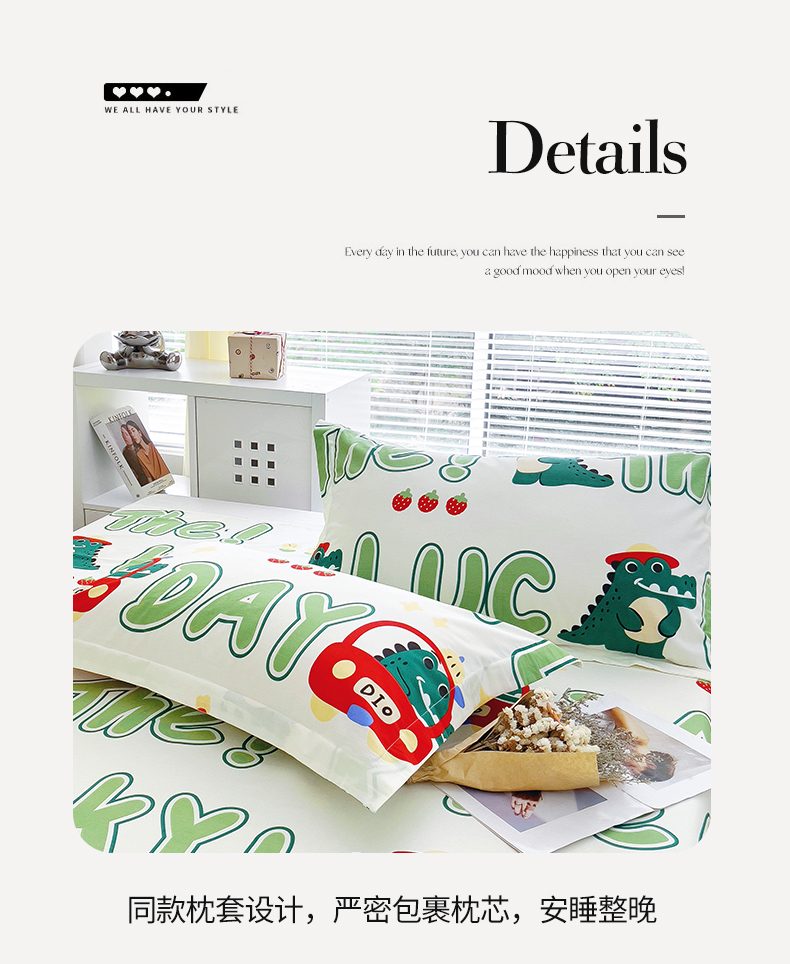 (总)锦罗绣 2025新款全棉双层纱学生套件三件套,波点蝴蝶结,呆萌熊,好奇小狗,寂羽,萌趣汽车1,甜桔,小松树,小熊星球