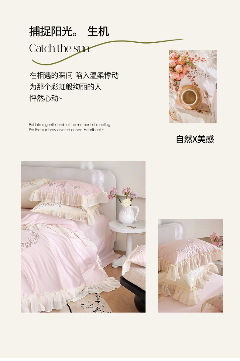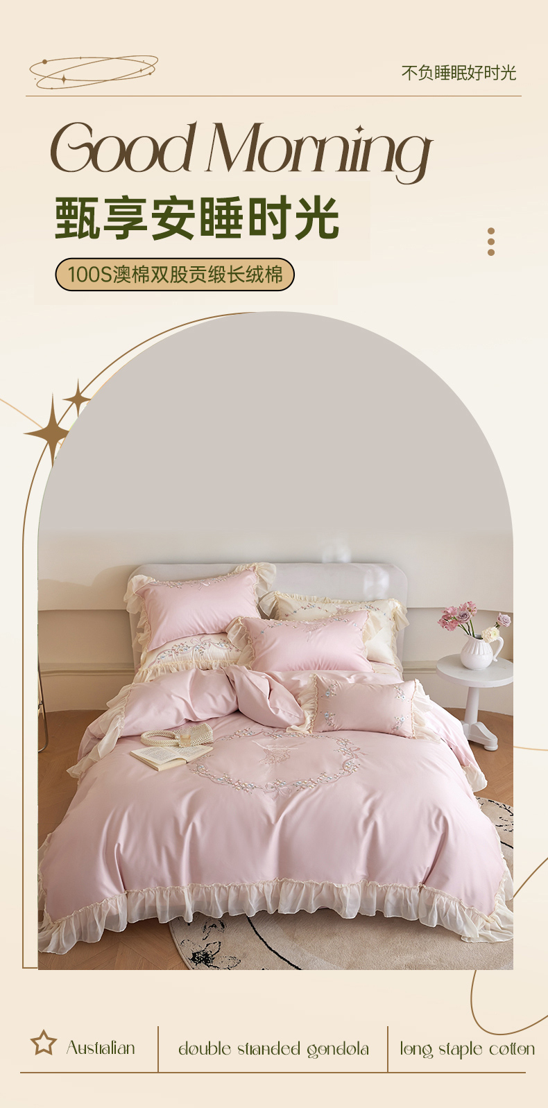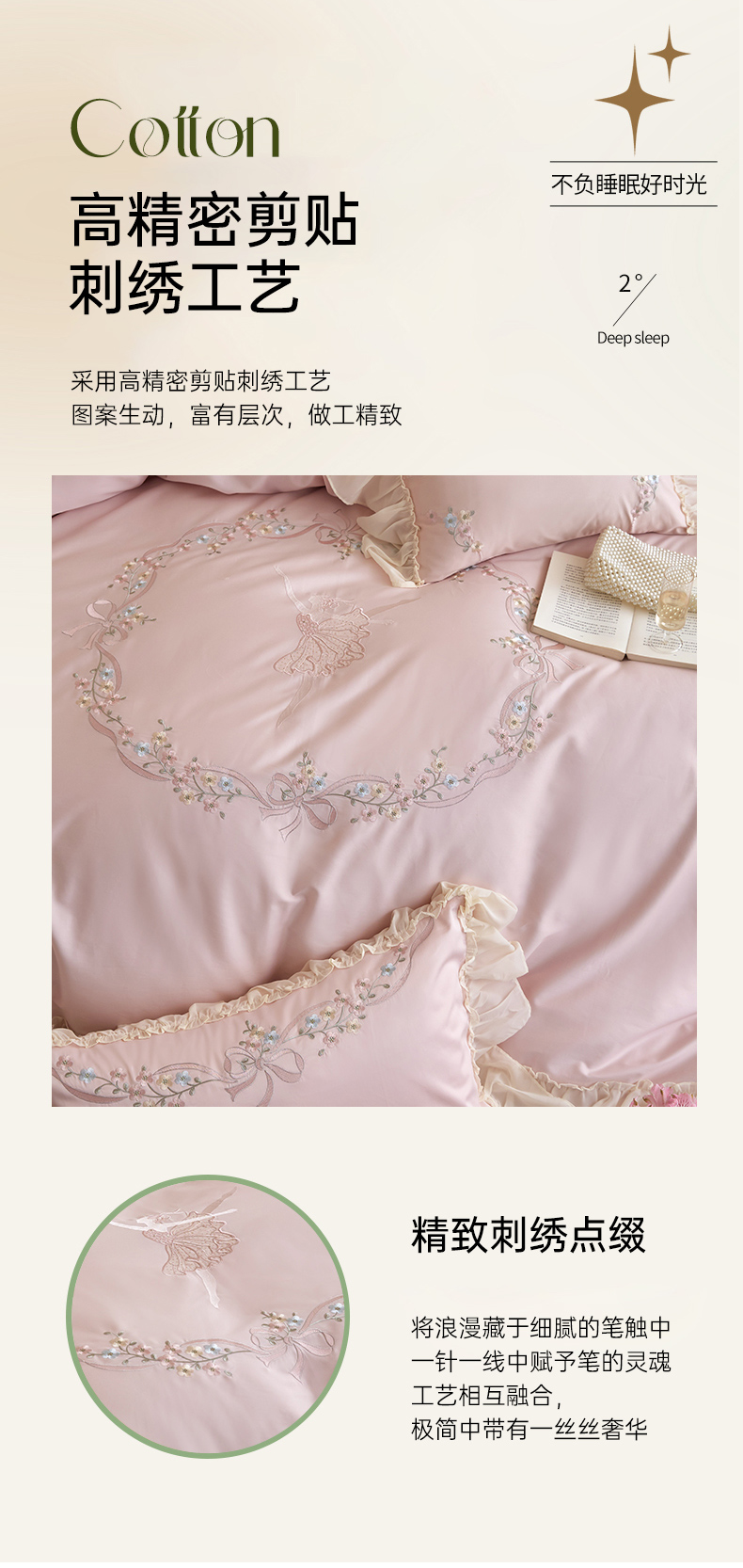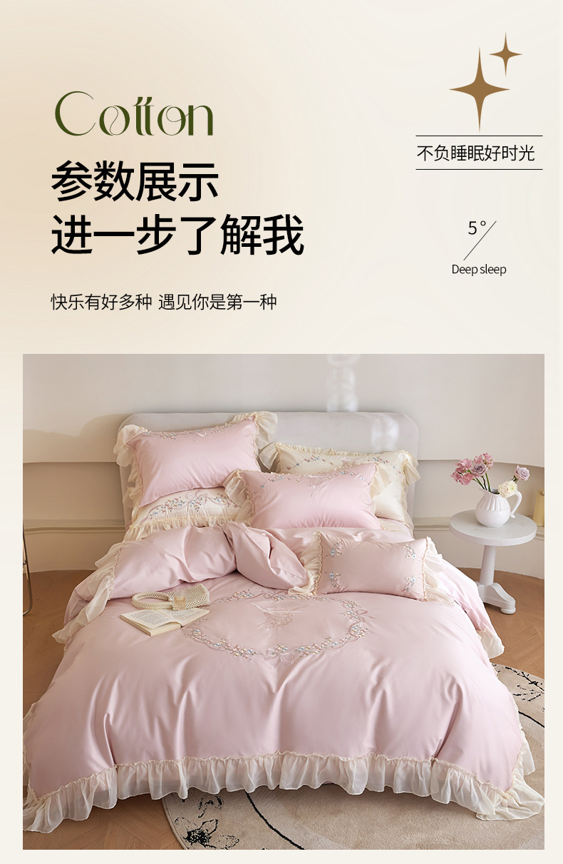 商品名称:嘉汀兰2024新款100S澳棉双股贡缎刺绣长绒棉六件套 樱花粉