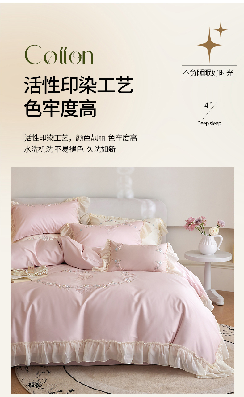 (总)嘉汀兰 2023新款60支全棉磨毛绣花撞色轻奢四件套—暮里,粉色,红灰色,芥绿色,浅灰色,深青色