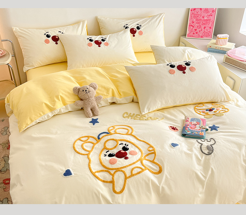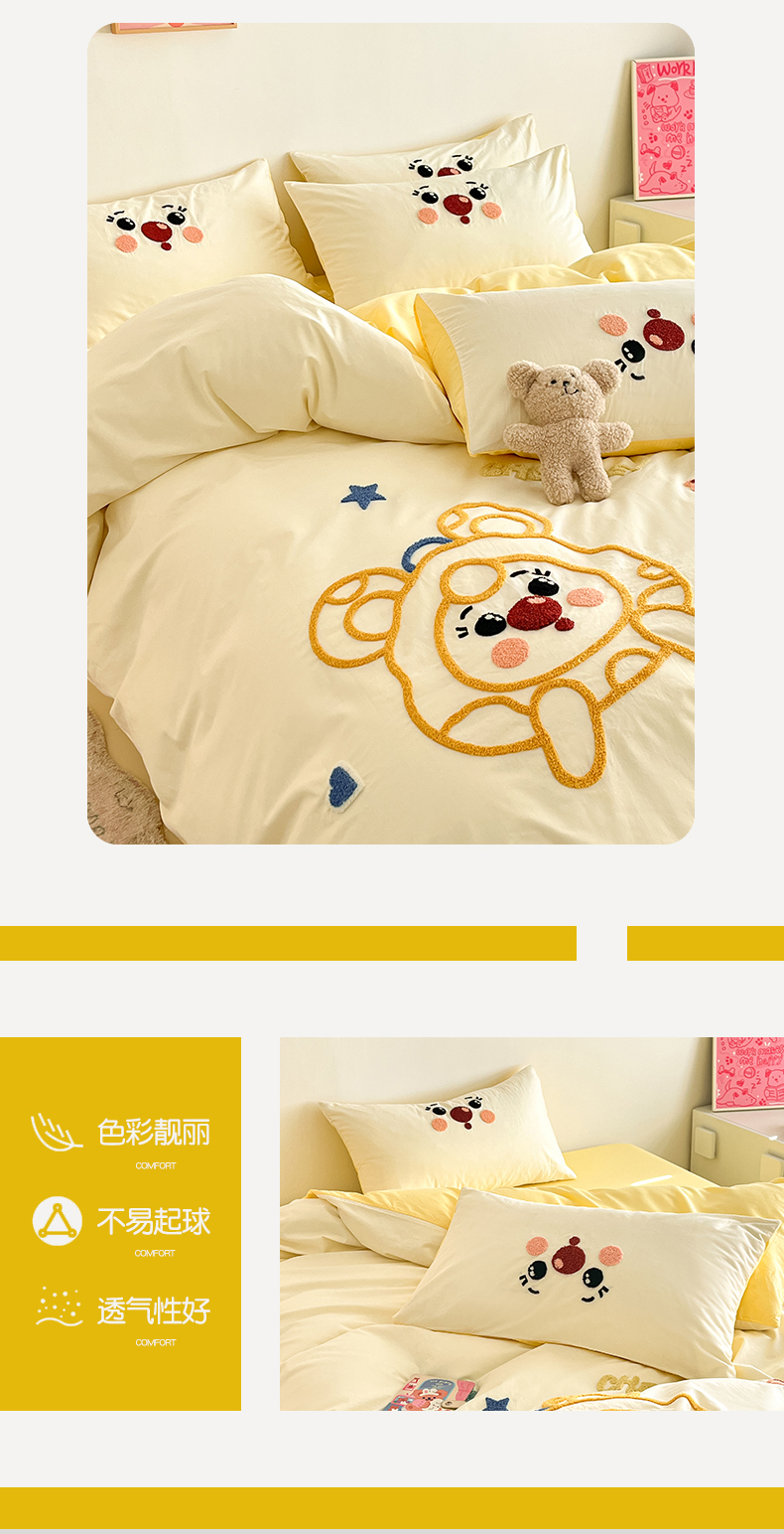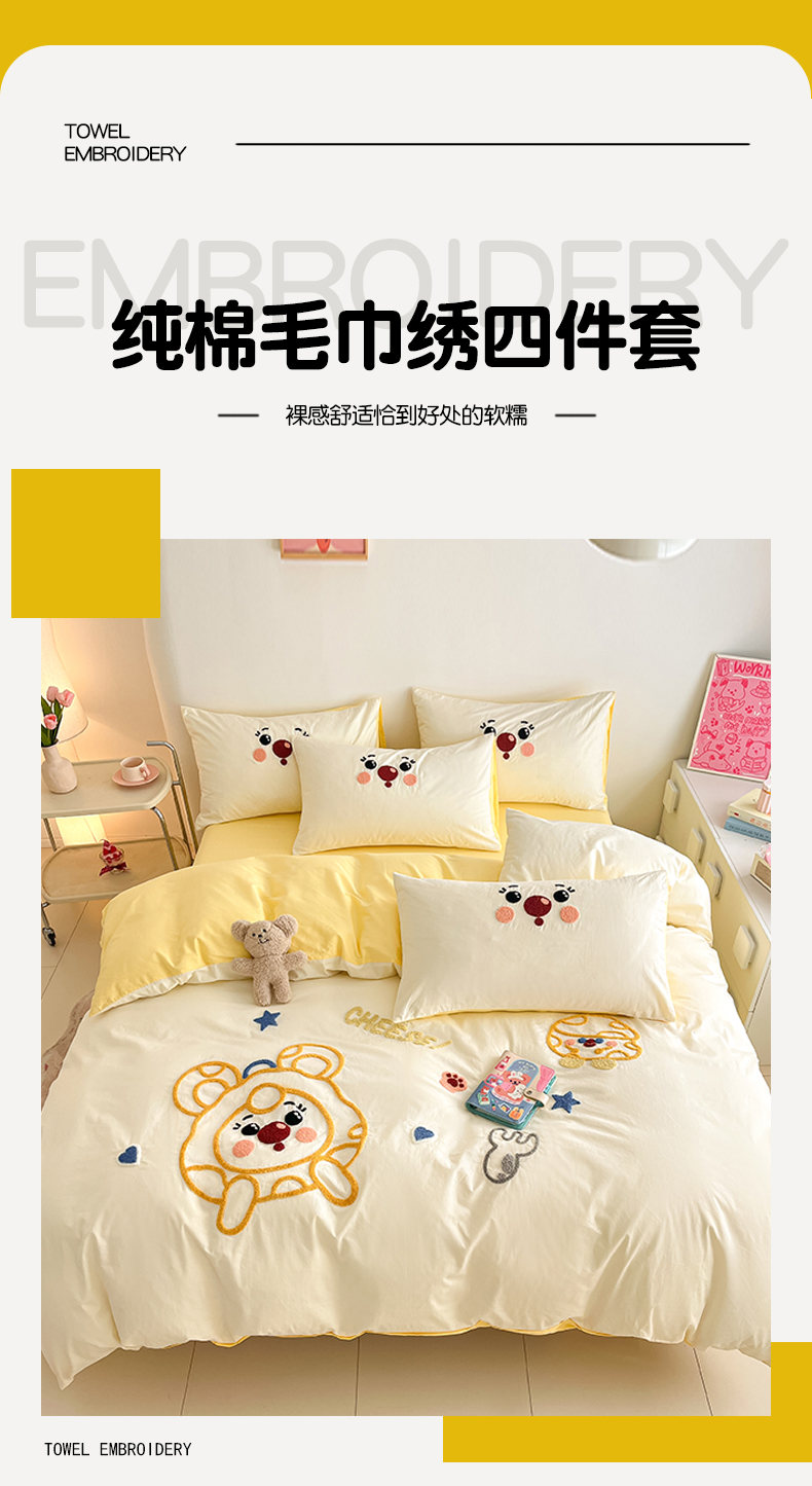 当前位置: 91家纺网 > 商品网购 > 床品套件 > 四件套 > 毛巾绣四件套 > 琪格格2024新款纯棉毛巾绣四件套 调皮芝士 米白配奶黄