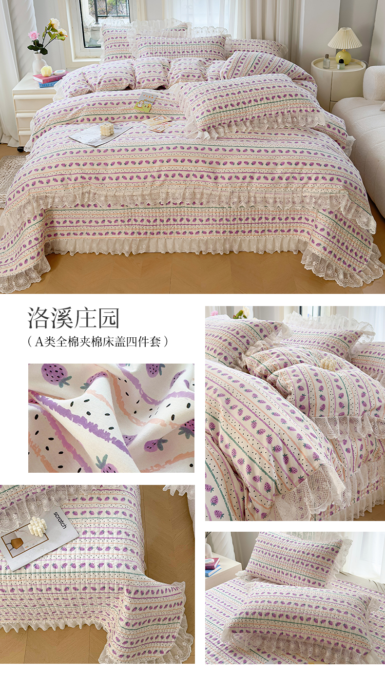 当前位置: 91家纺网 > 商品网购 > 床品套件 > 四件套 > 全棉普通四件套 > 宜凡家纺 2024新款双面全棉印花系列床盖四件套 洛溪庄园