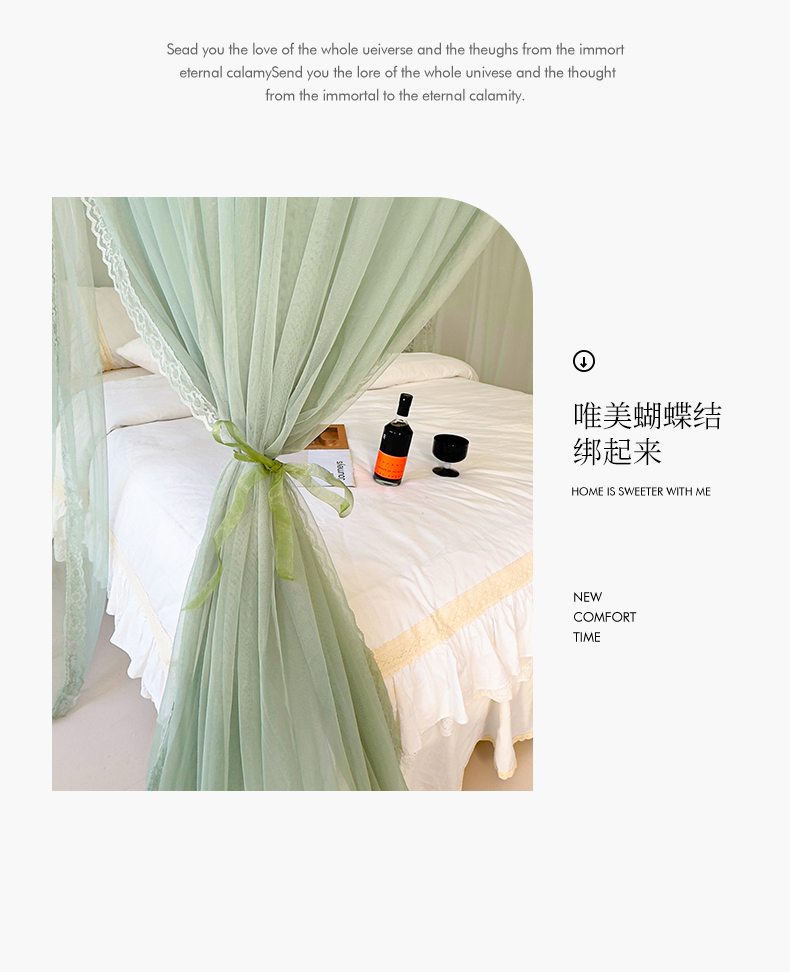 商品名称:U型导轨双层刺绣花边蚊帐917香丽儿蚊帐系列 香丽儿-青缇绿