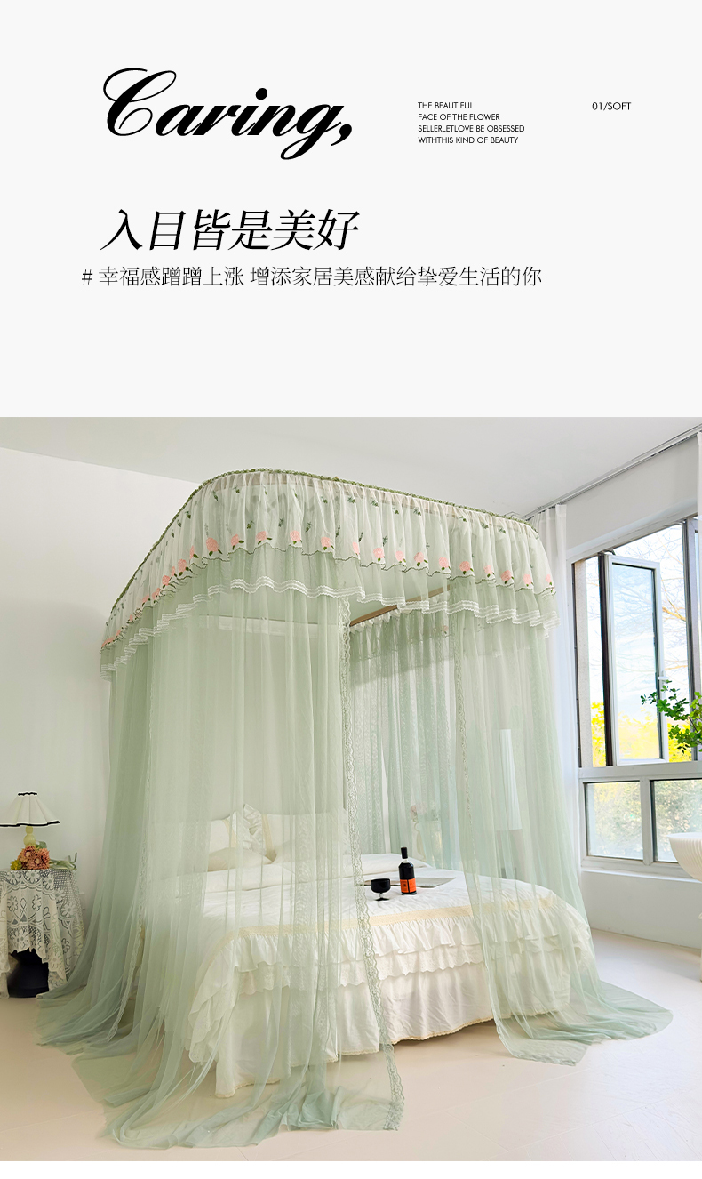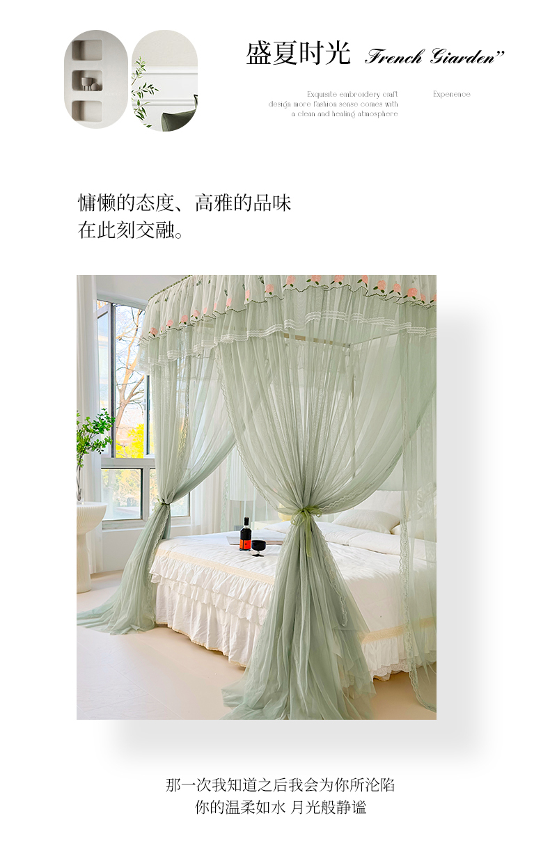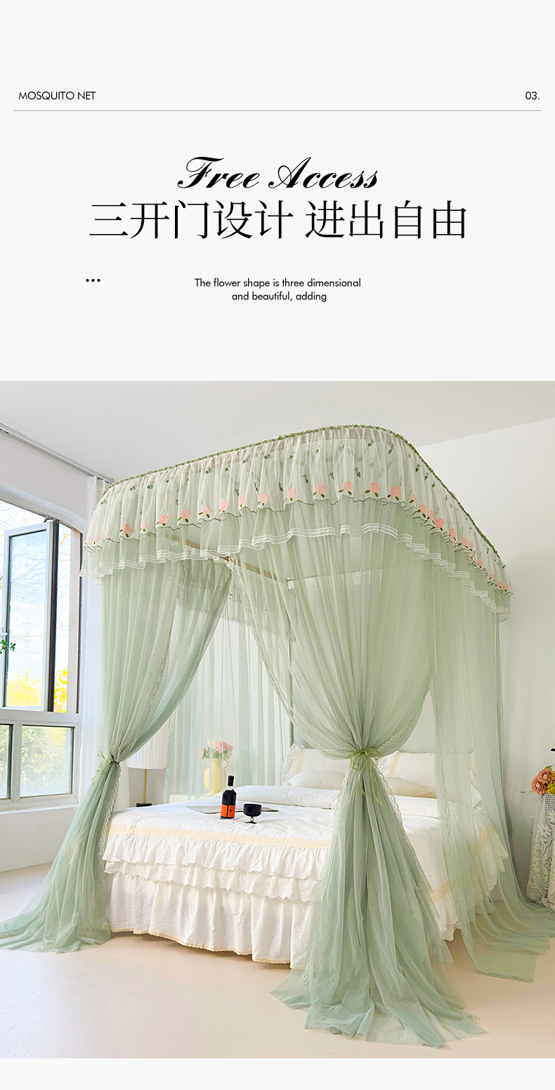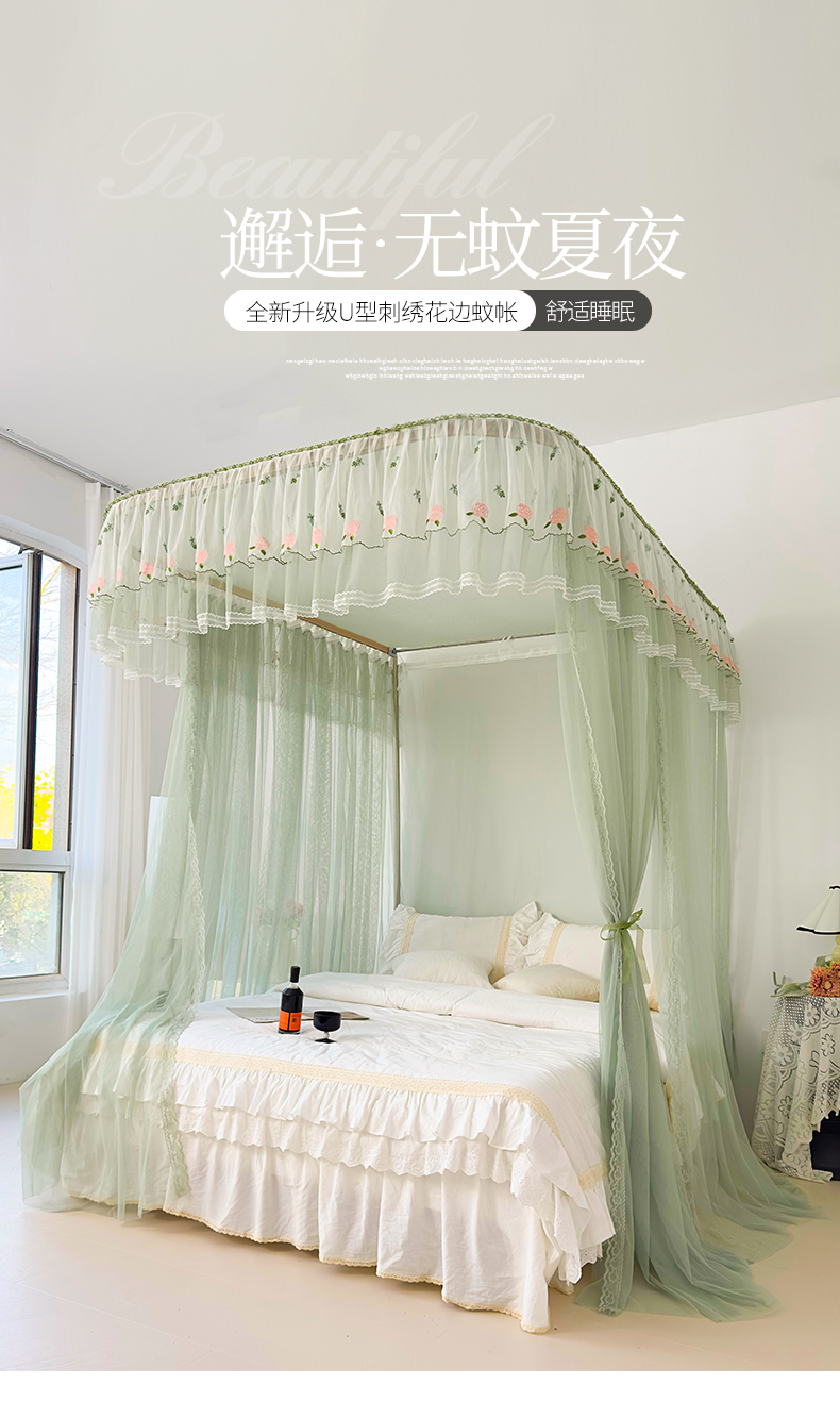 U型导轨双层刺绣花边蚊帐917香丽儿蚊帐系列 香丽儿-青缇绿