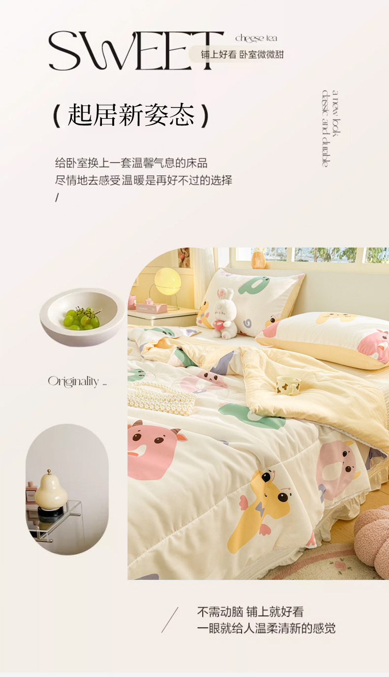 商品名称:寐居家纺 2024新款水洗棉小花边夏被 萌趣