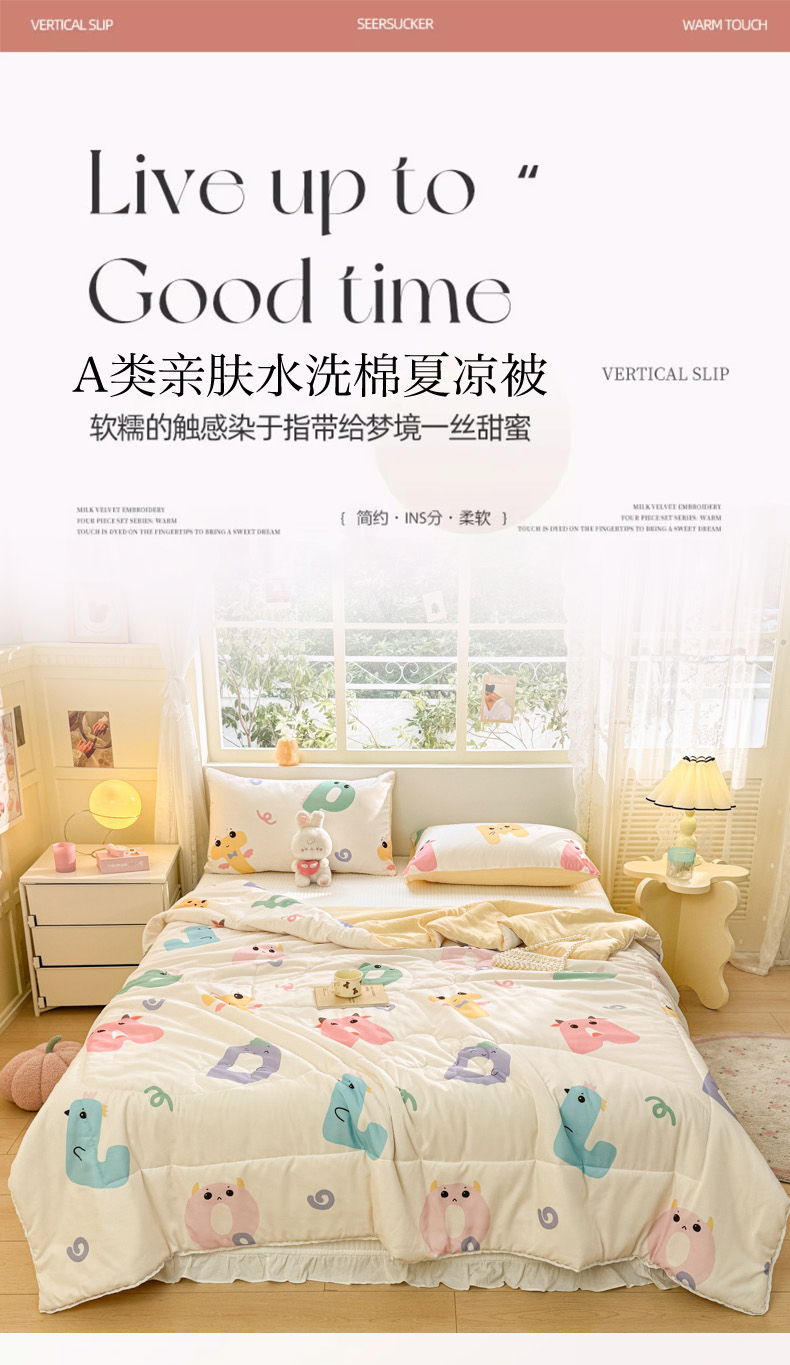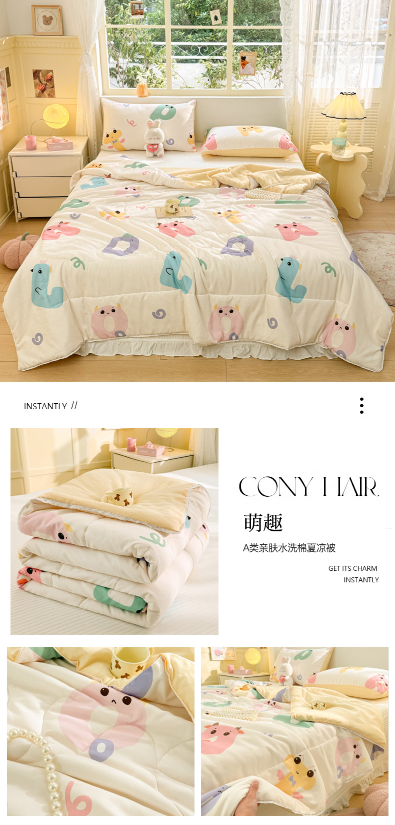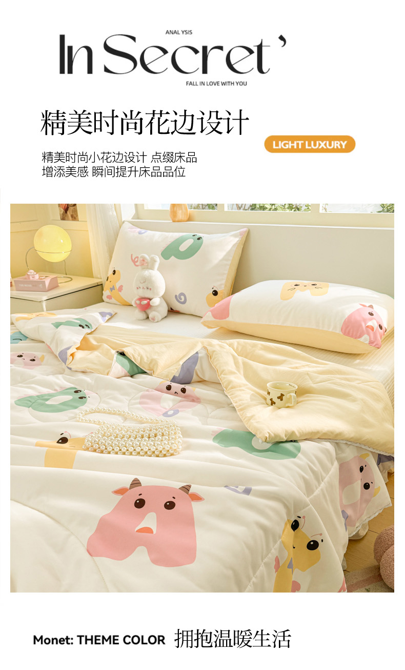 寐居家纺 2024新款水洗棉小花边夏被 萌趣