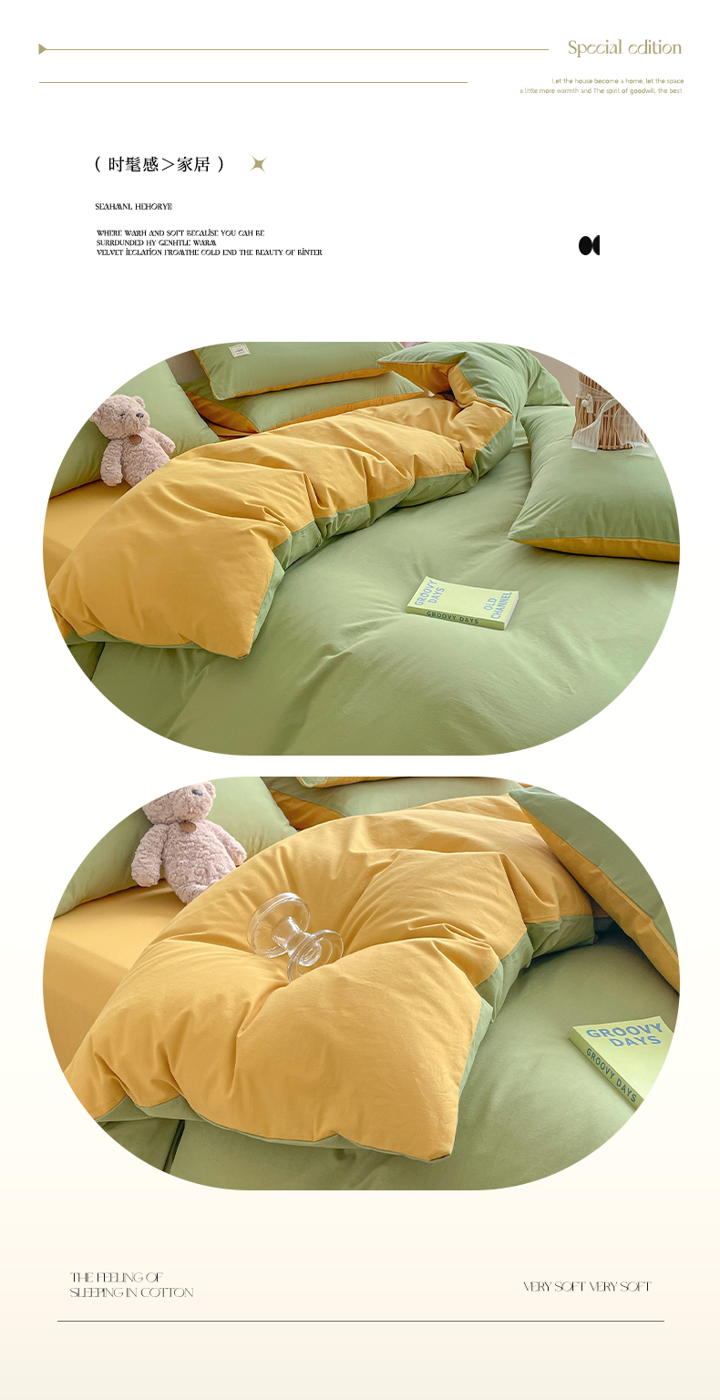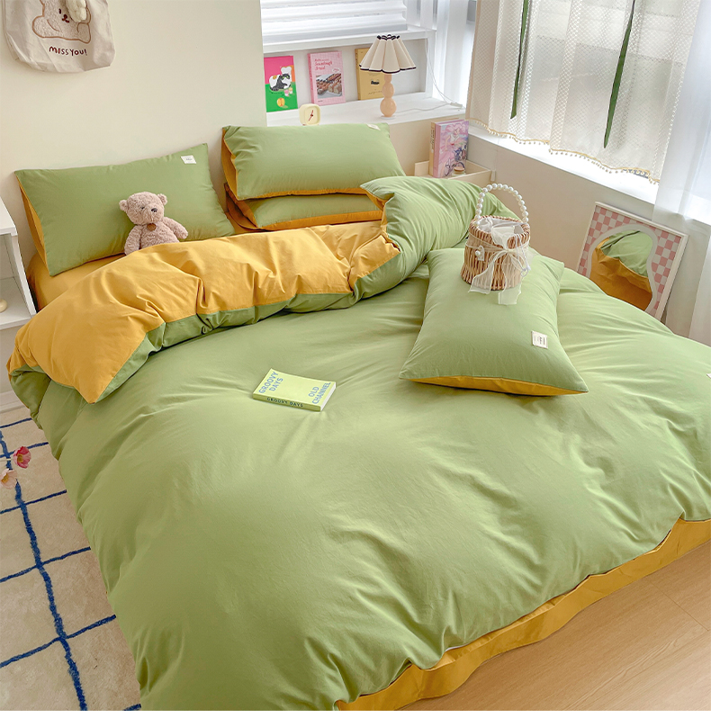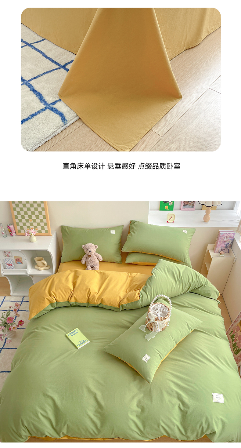 商品名称:雅居纺家纺 2024新款全棉素色水洗棉四件套 果绿绅士黄