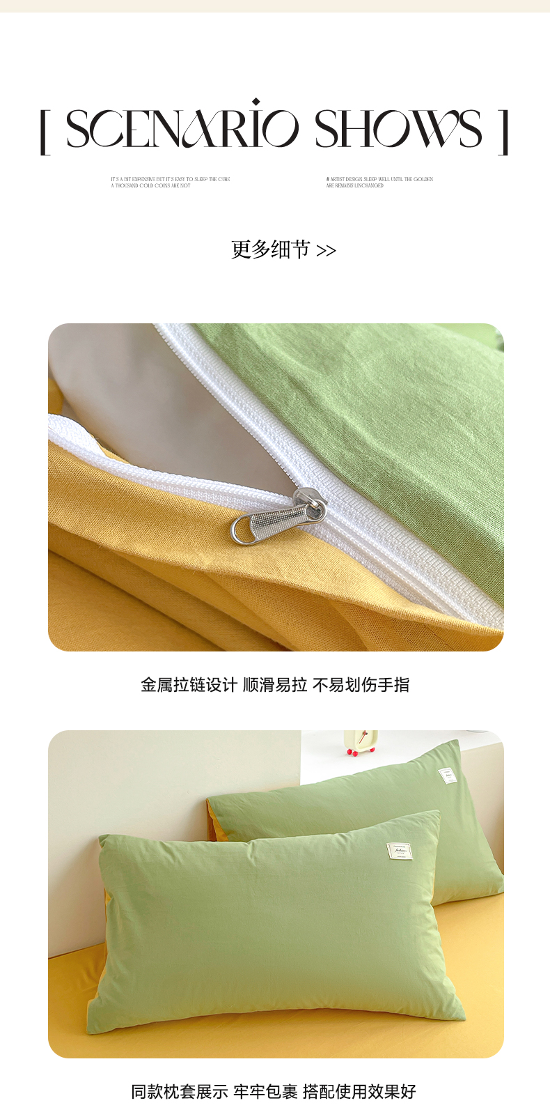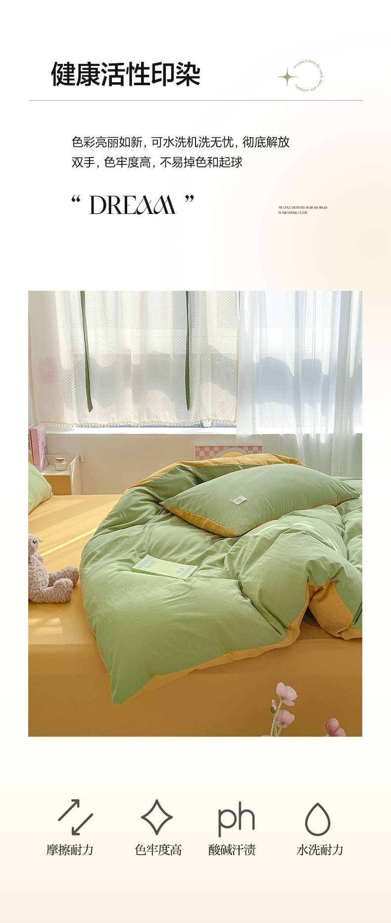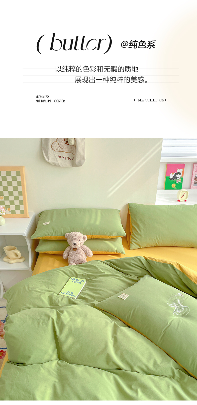 商品名称:雅居纺家纺 2024新款全棉素色水洗棉四件套 果绿绅士黄