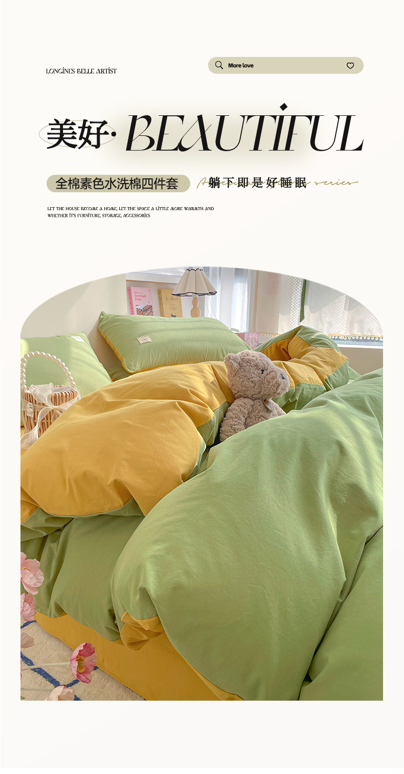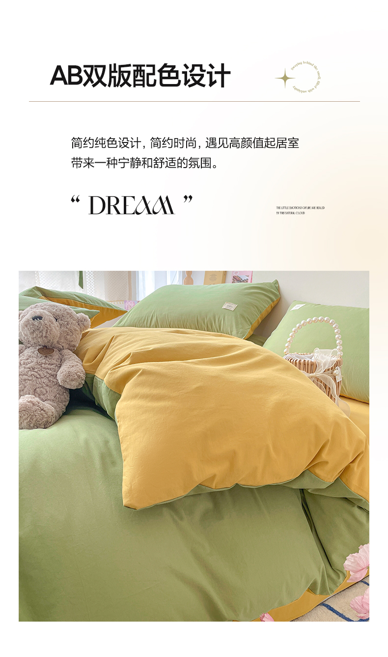 (总)雅居纺家纺 2022新款全棉水洗棉四件套,Ins粉蓝,ins浅蓝,白+墨子绿,白+绅士红,低调灰,低调灰绅士灰,豆绿+米黄,复古绿卡其,果绿绅士黄,焦糖咖啡,咖啡+卡其,米黄,米黄+明黄,米黄咖啡,米黄水绿,墨子绿,墨子绿卡其,墨子绿绅士黄,牛仔蓝低调灰,浅蓝深灰,清雅蓝绅士灰,绅士红卡其,绅士黄卡其,绅士灰,新蓝米黄