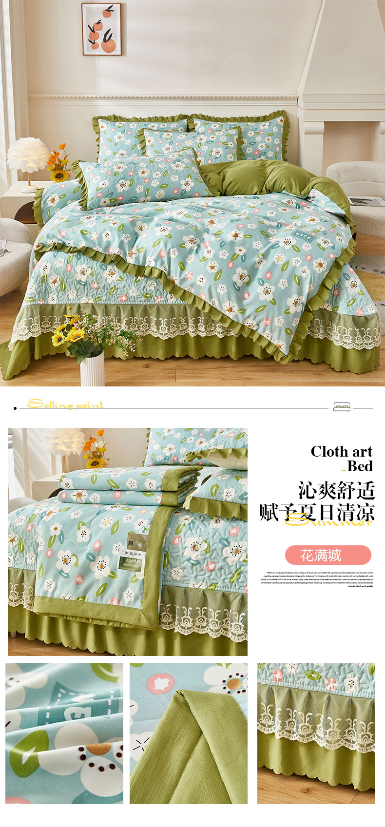 商品名称:美之润家纺 2024新款床盖款夏被四件套 花满城