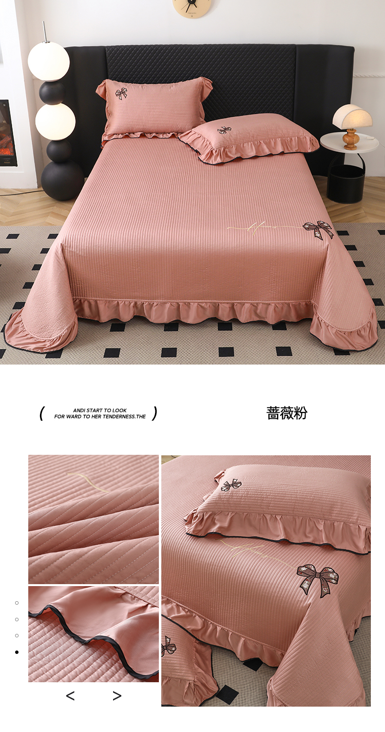 商品名称:上喜 热卖天丝夹棉床盖系列- 蝴蝶结床盖 蔷薇粉