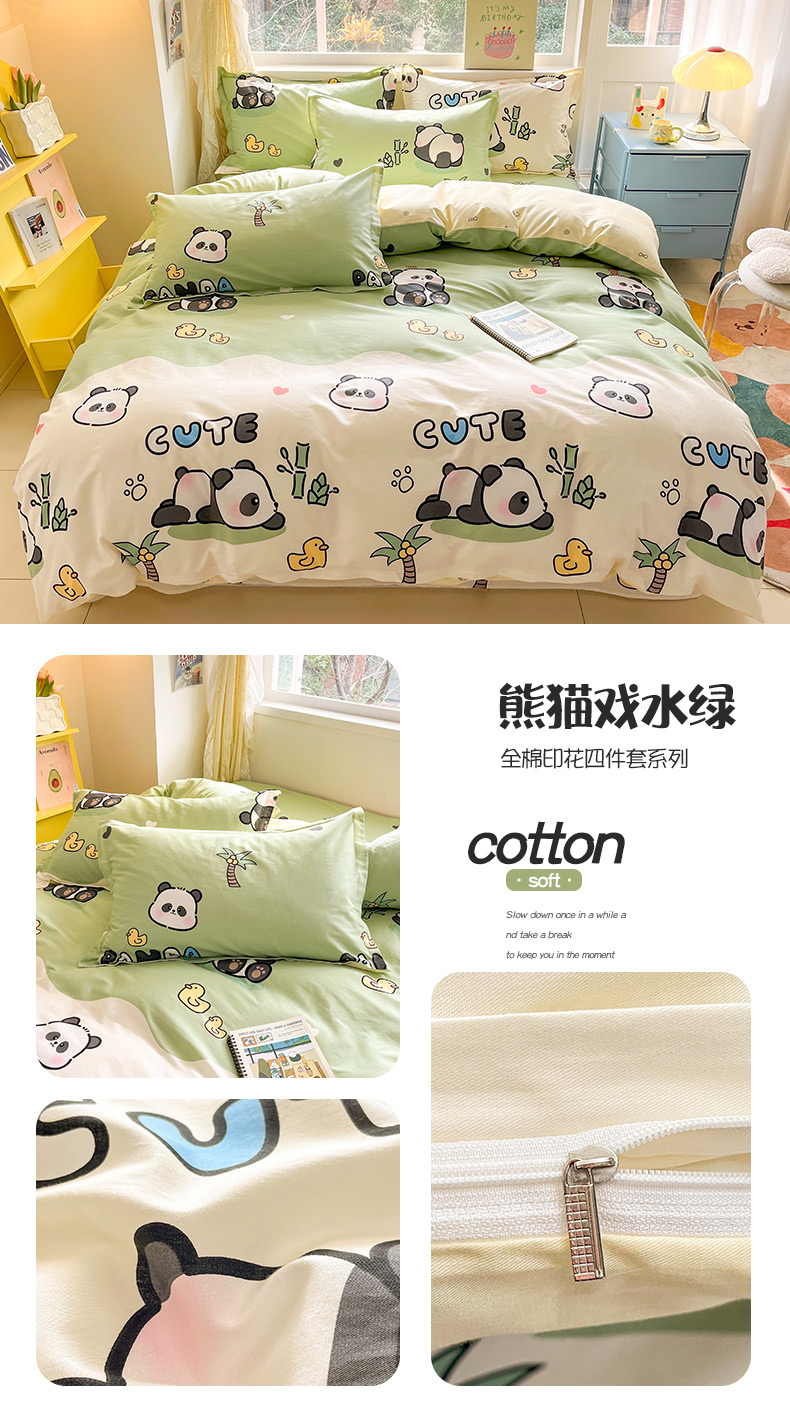 商品名称:绵庭家纺 2024新款AB版全棉印花系列四件套 熊猫戏水绿