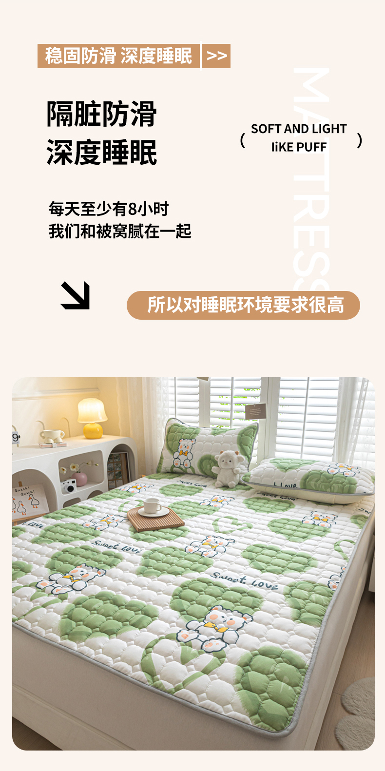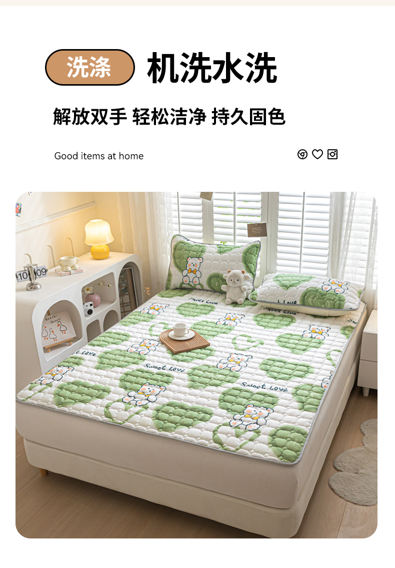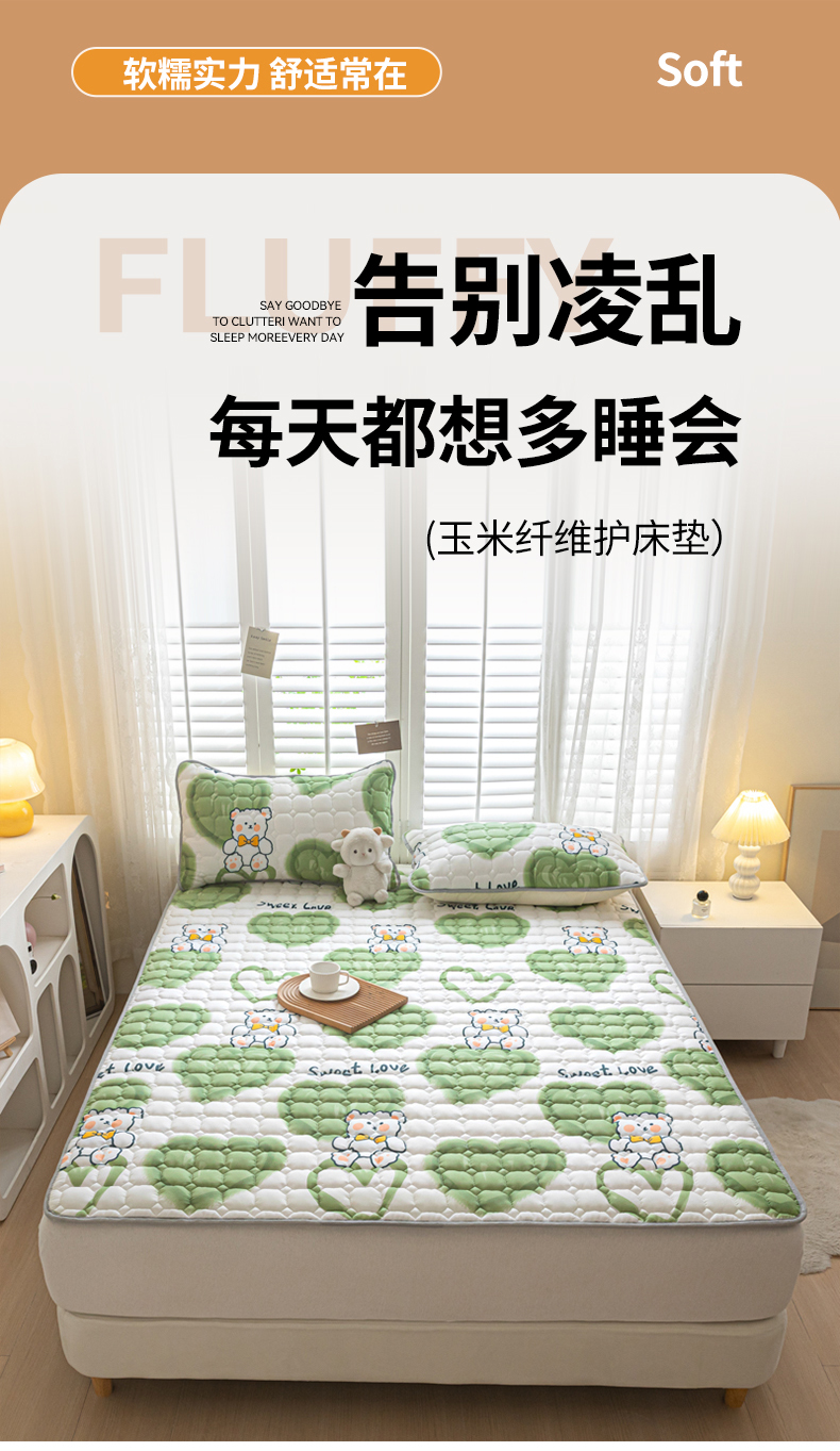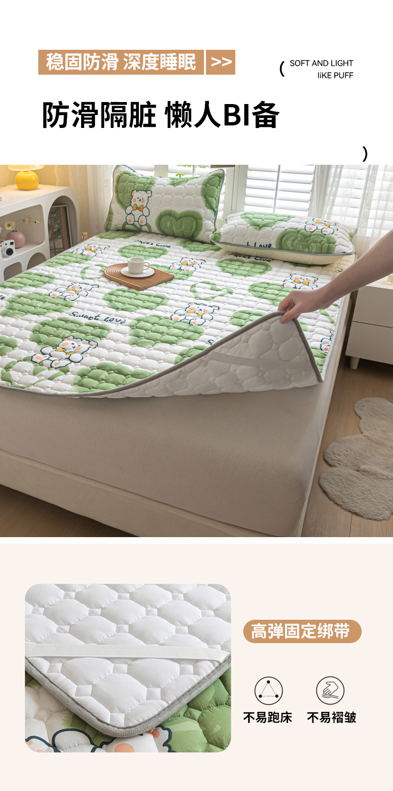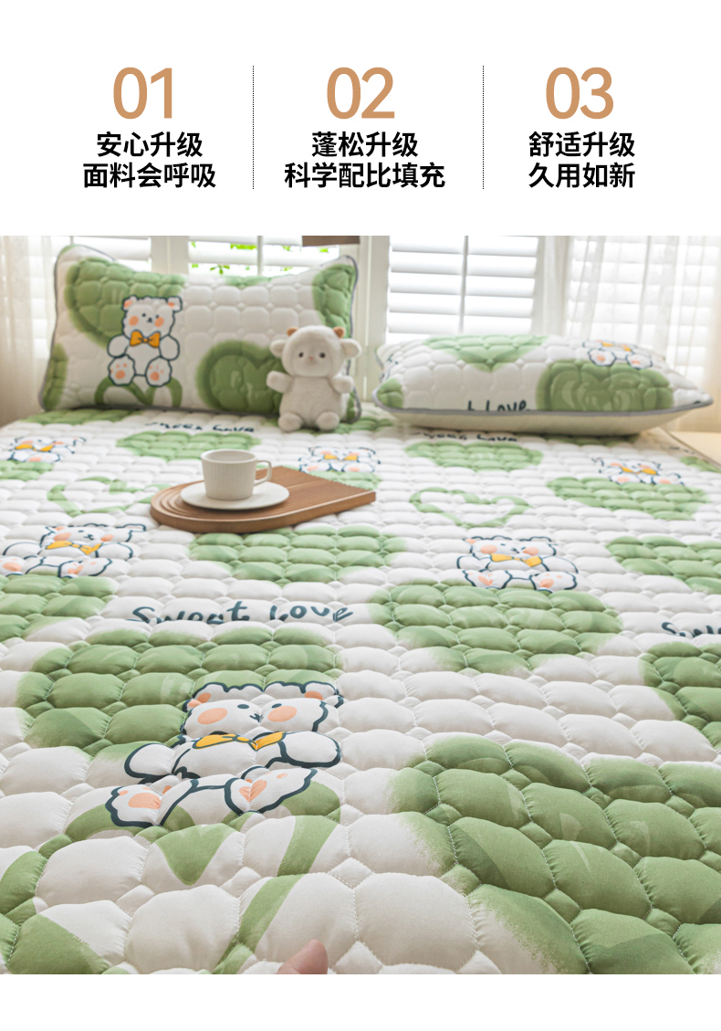 商品名称:暖季 2025新款A类数码印花床护垫 床护垫-绿心熊