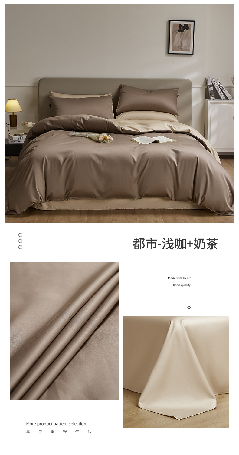 商品名称:慕色家纺 2024新款都市系列全棉纯色四件套 都市-浅咖+奶茶
