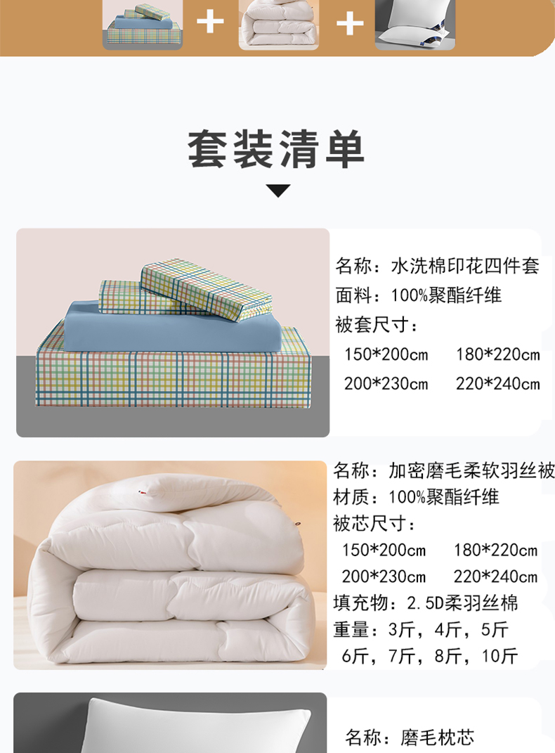 0.9m床五件套配8斤被子 | ¥105.00 |