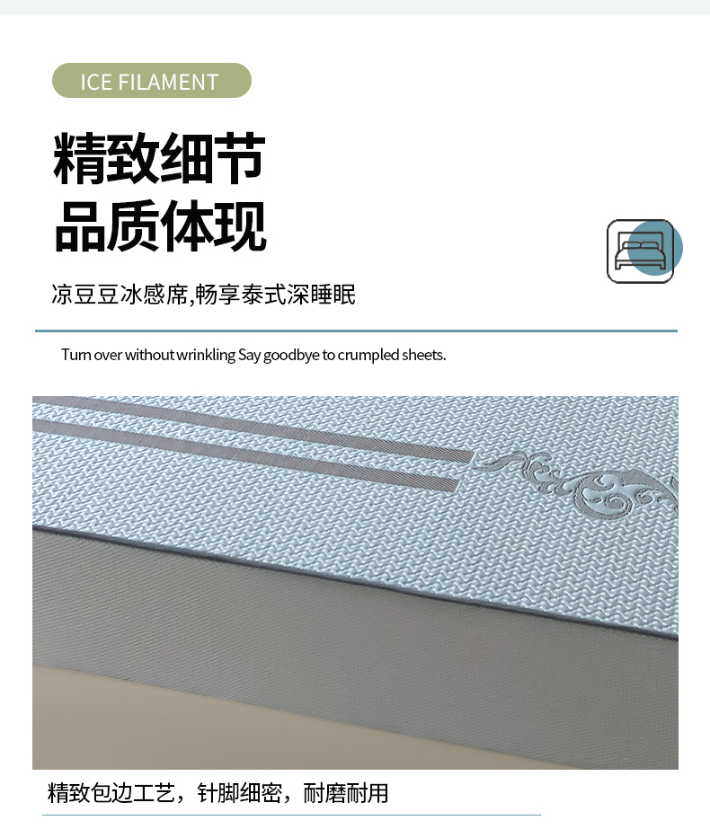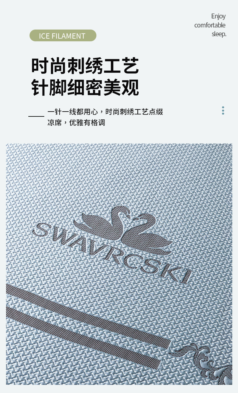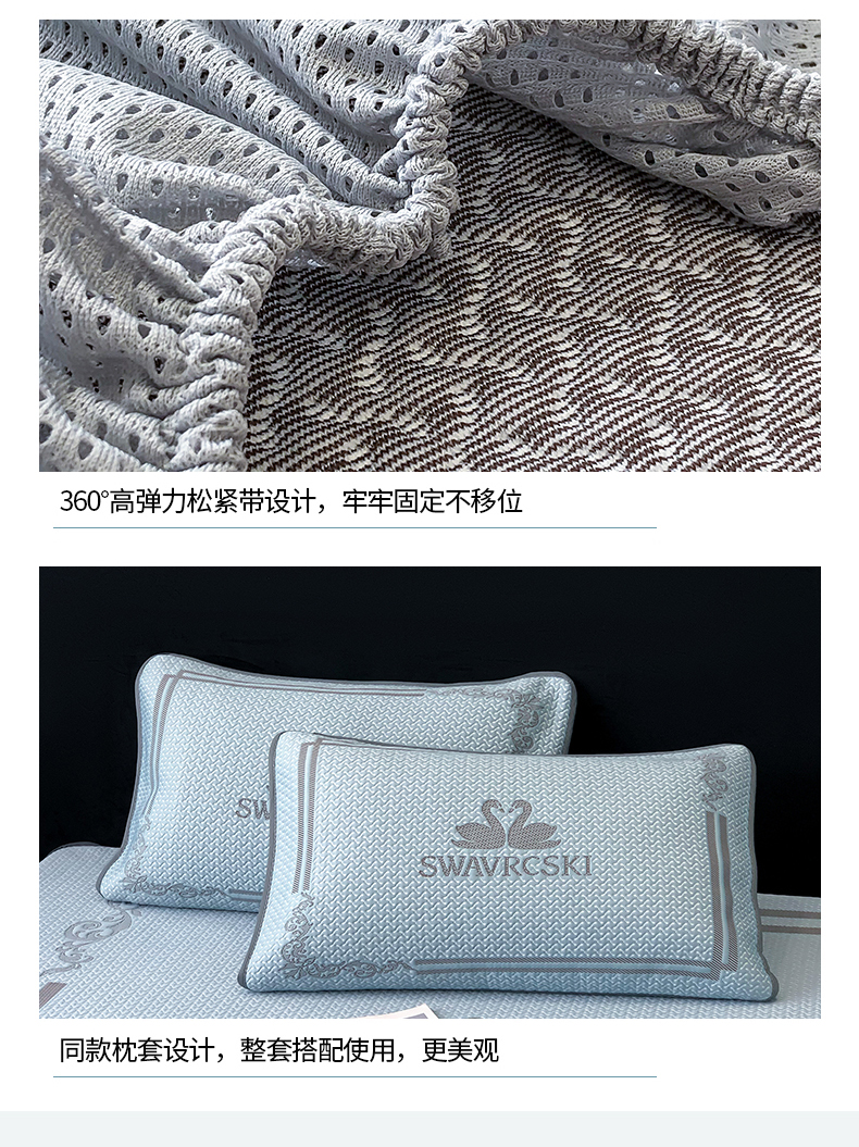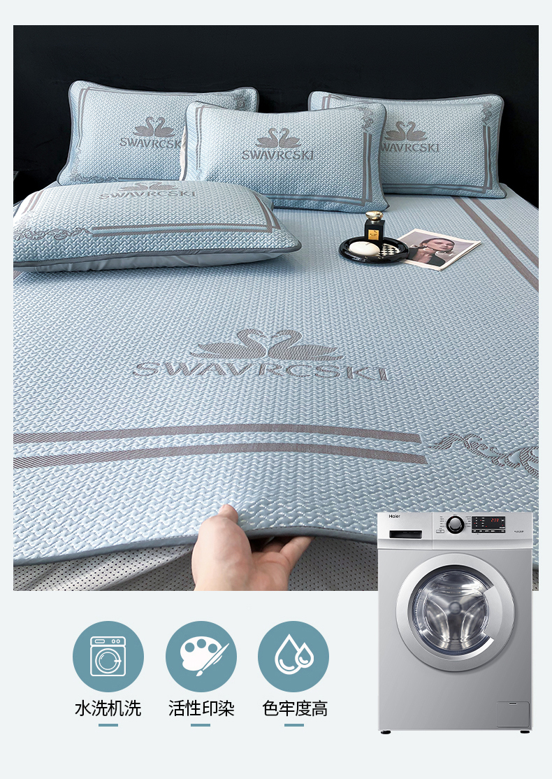商品名称:首尔家纺 2024新款凉豆豆凉席床笠凉感丝凉席大版系列 天鹅-天空蓝