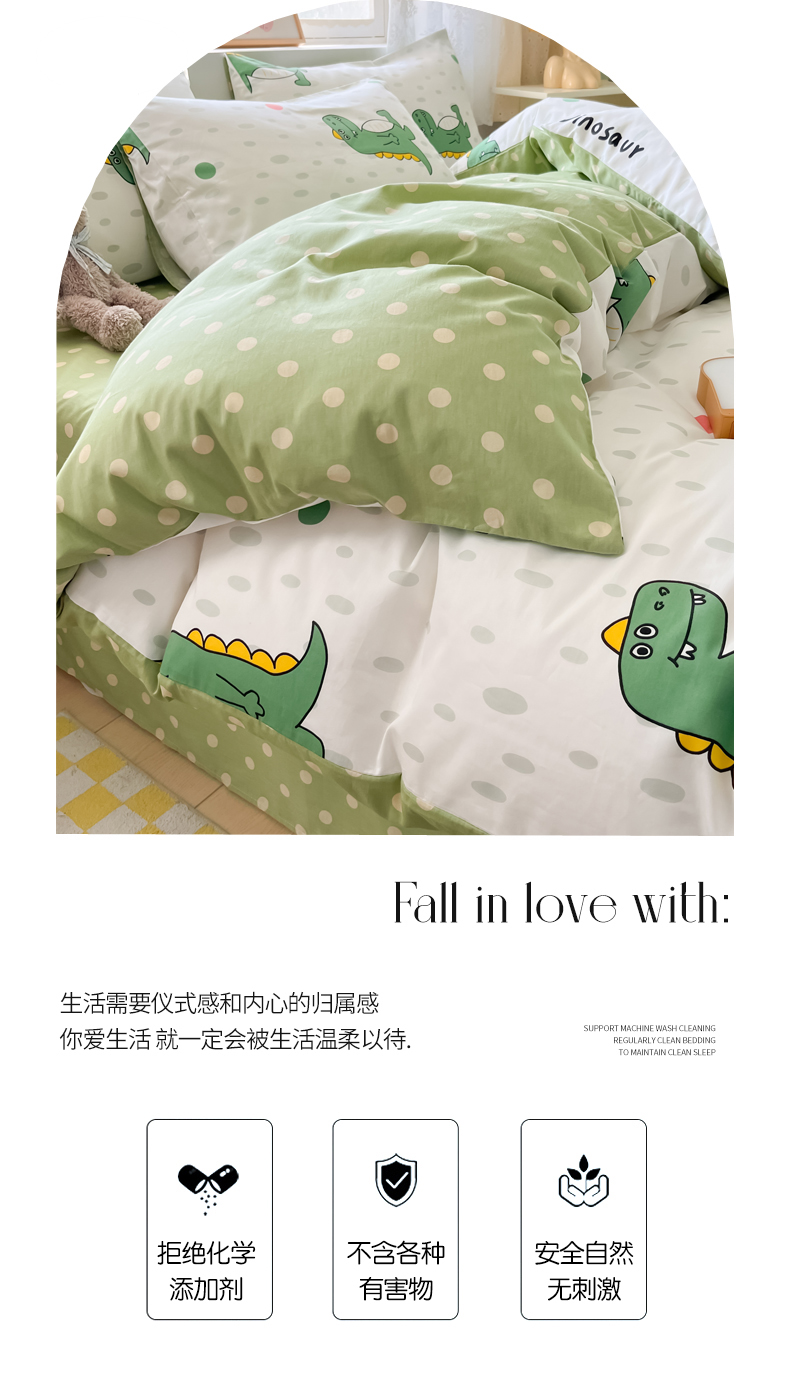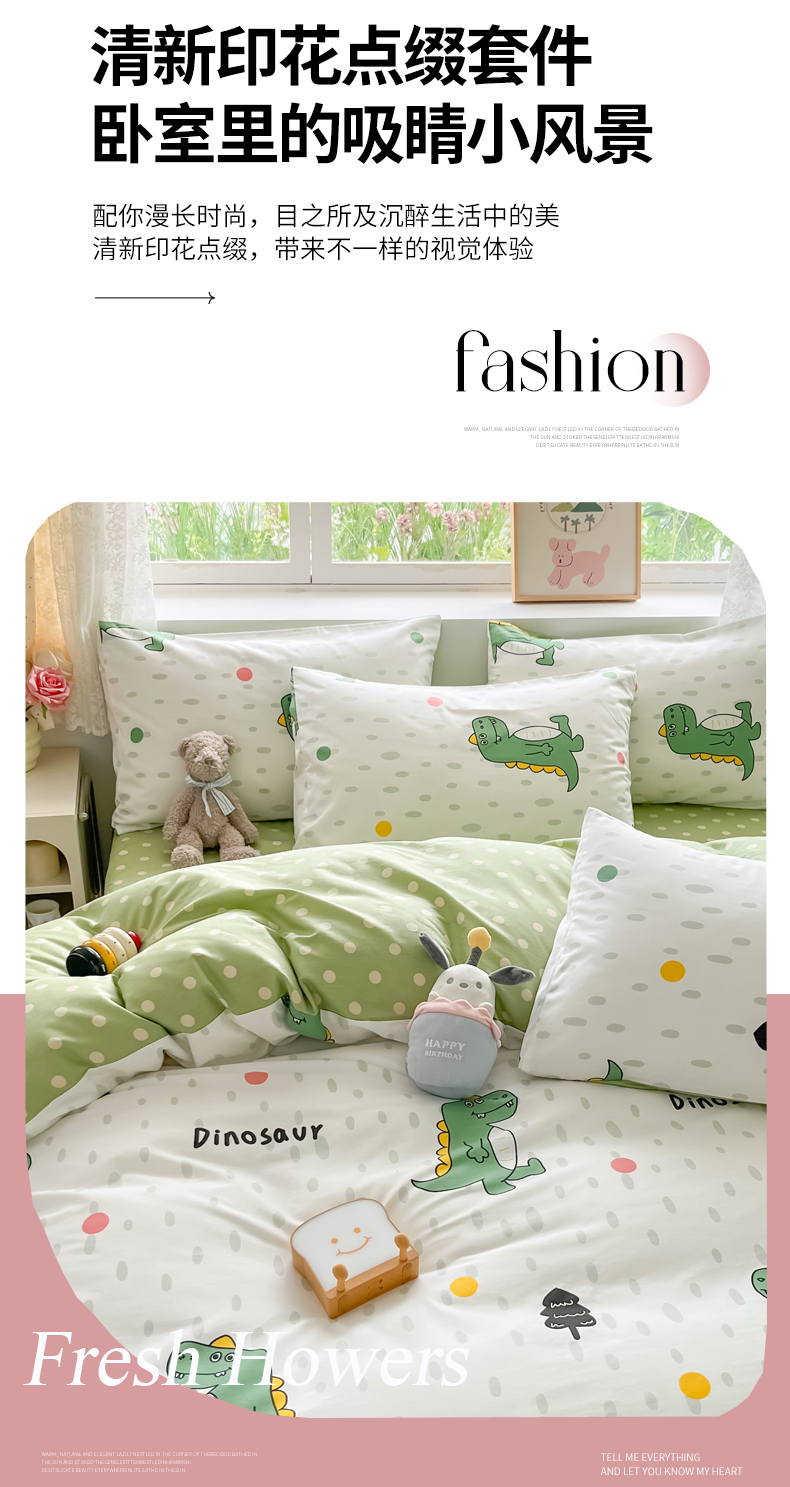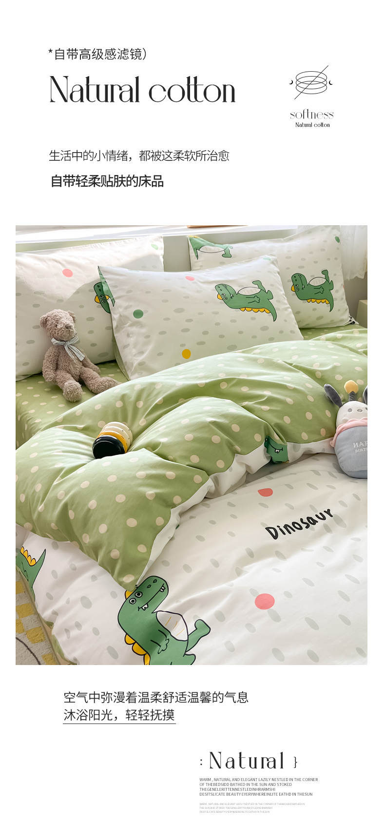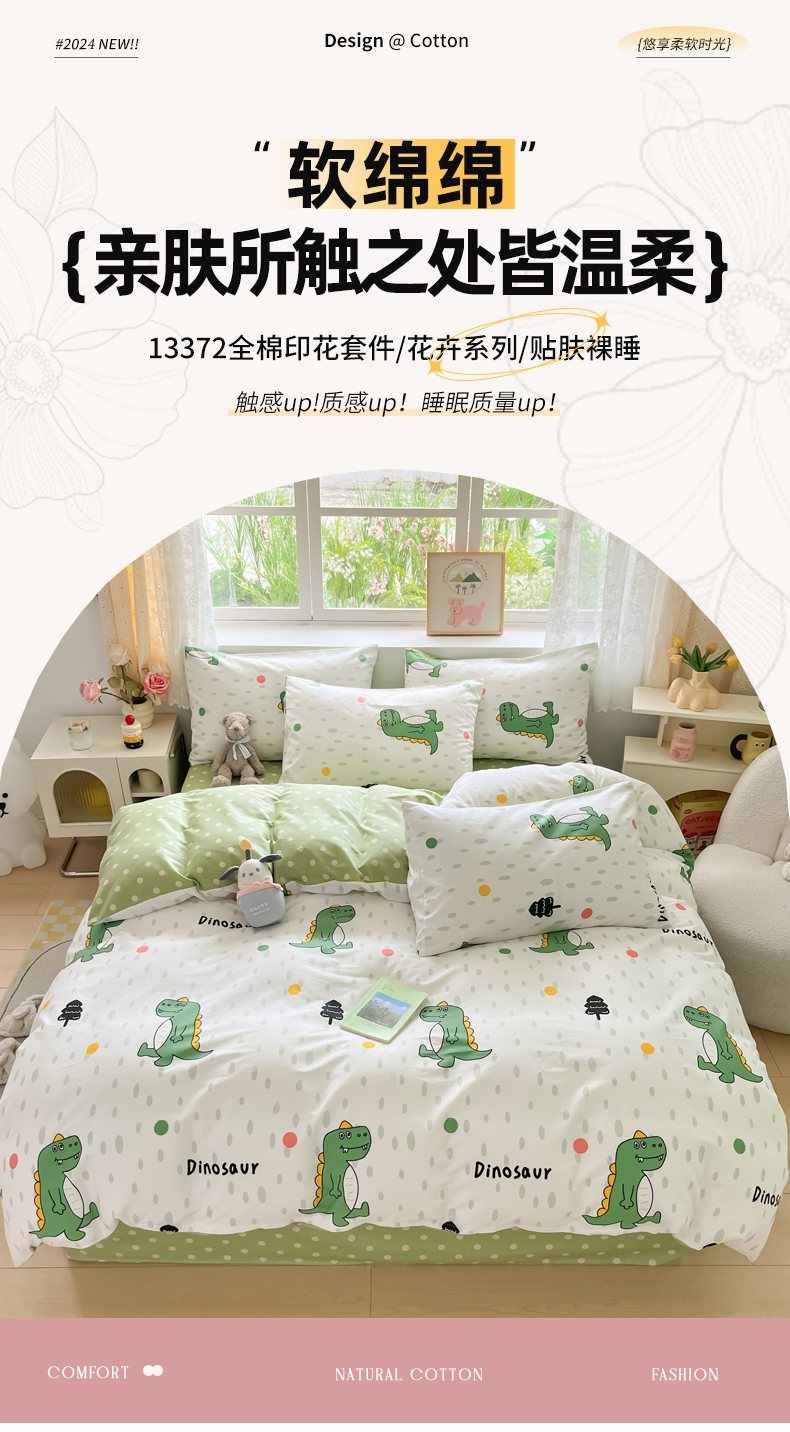 芊寻家居 2024新款全棉13372花卉系列四件套 恐龙点点