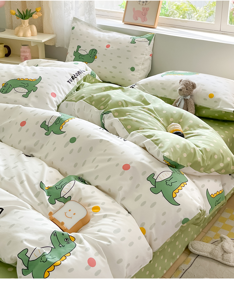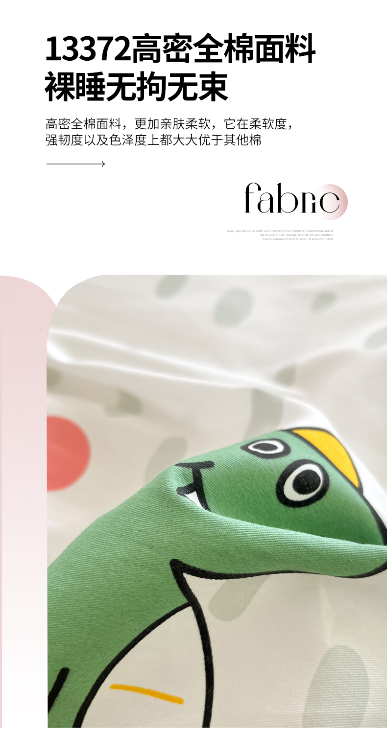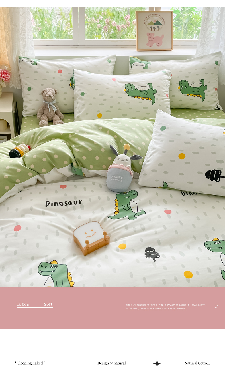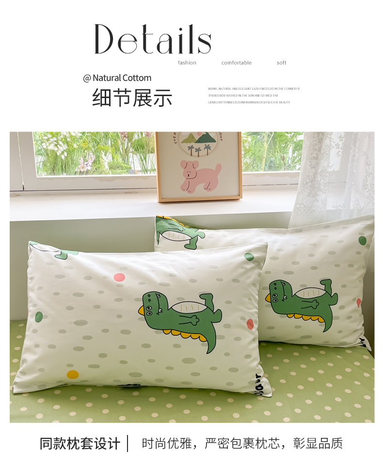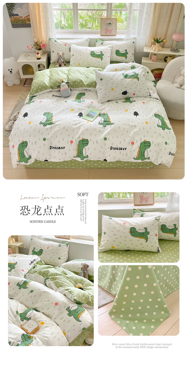 芊寻家居 2024新款全棉13372花卉系列四件套 恐龙点点