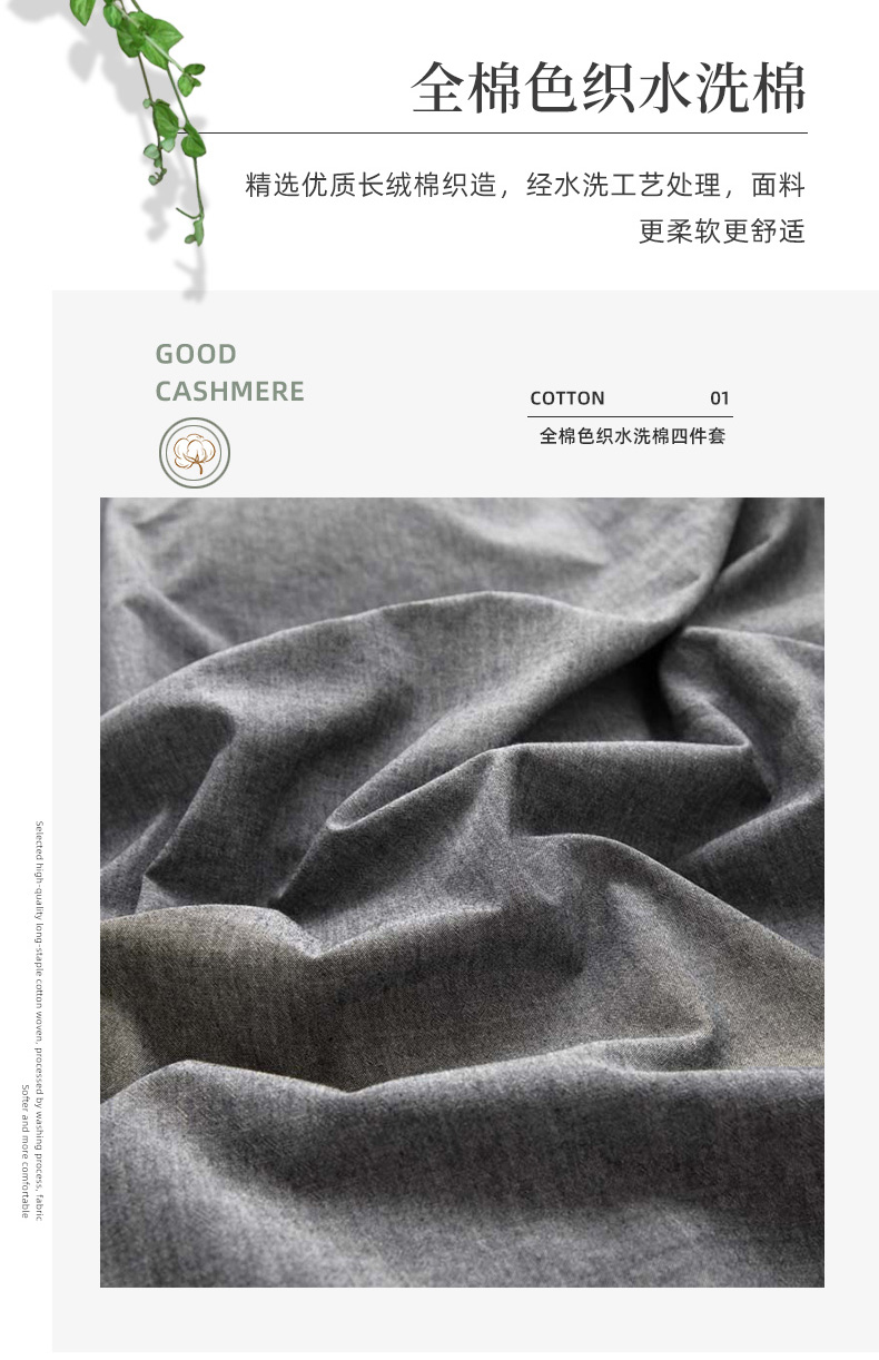 当前位置: 91家纺网 > 商品网购 > 床品套件 > 四件套 > 水洗棉四件套 > 柠萌家居 2024新款A类全棉色织水洗棉无印风四件套 深灰