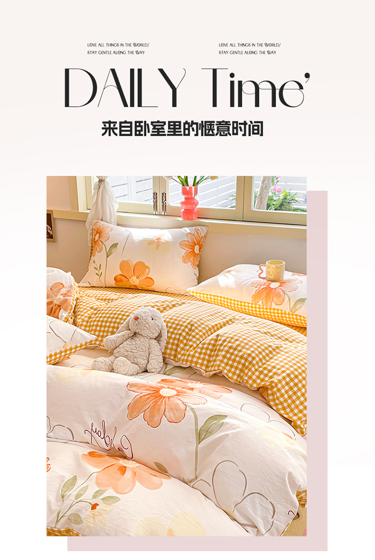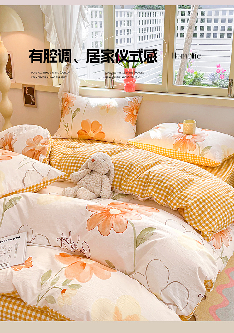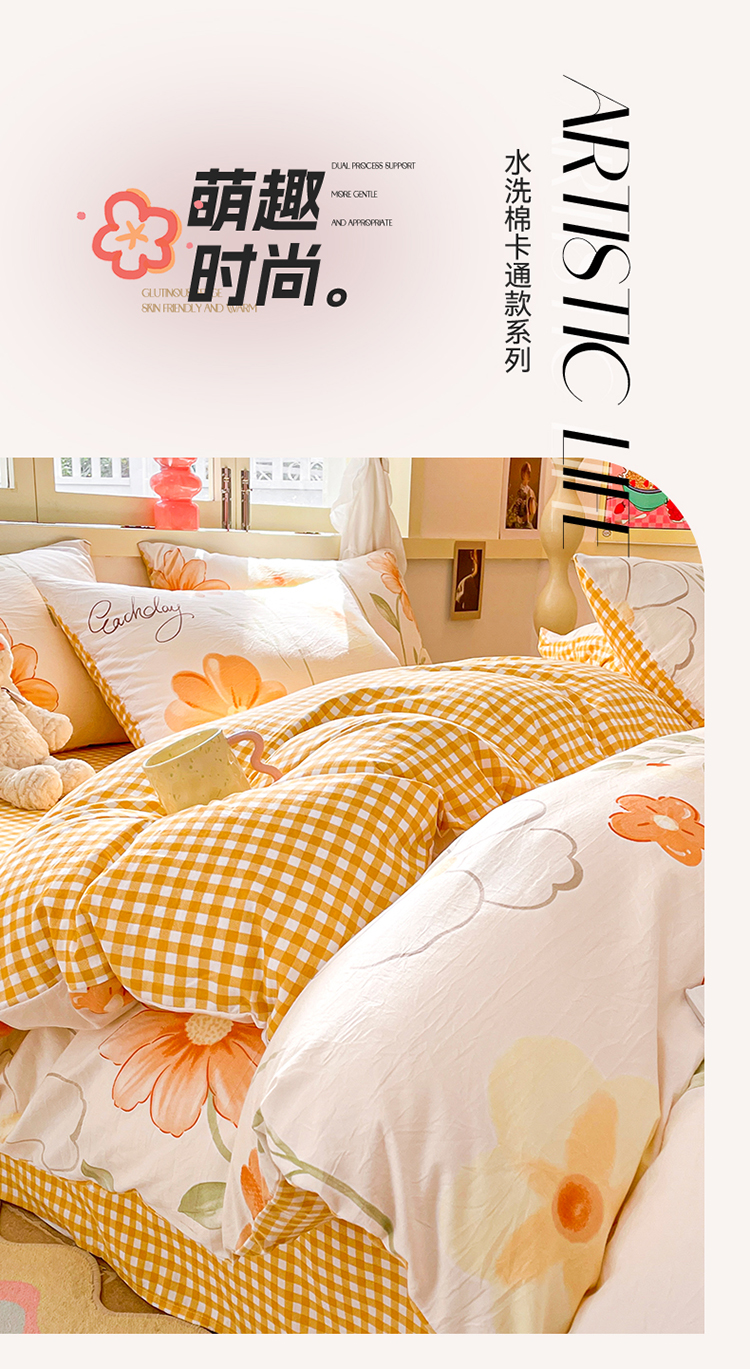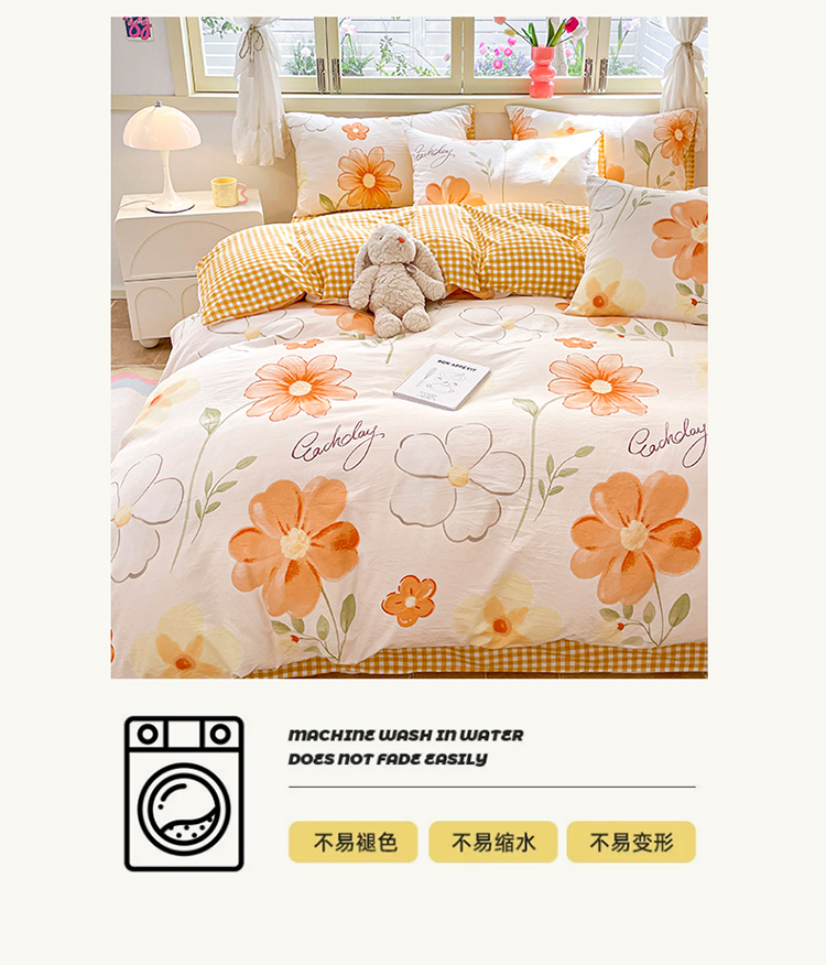 当前位置: 91家纺网 > 商品网购 > 床品套件 > 四件套 > 水洗棉四件套 > 盛秋家纺 2026新款水洗棉印花四件套-卡通系列 秋日花语+黄小格