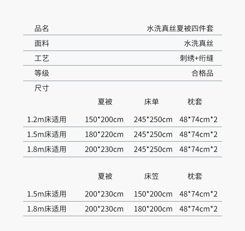 2*2.3m夏被1.8 床笠款四件套 | ¥85.00 |