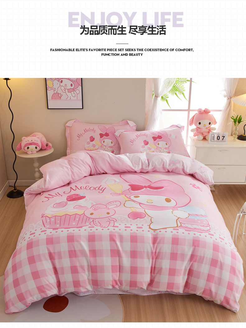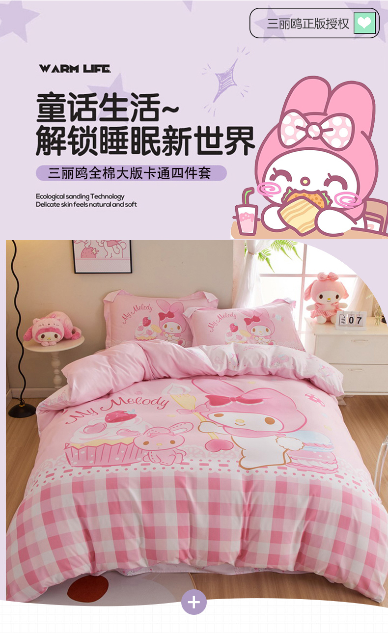 (总)蘭菲家纺 2026新款全棉三丽欧印花卡通四件套,必爱乐奶茶,波点KT,车站KT,大杯奶茶KT,逛街狗,精致狗狗,可爱KT灰,快乐小库,快乐休假,露营快乐,美乐必爱,轻松美乐蒂,涂鸦KT,夏日快乐,小库儿,小库故事