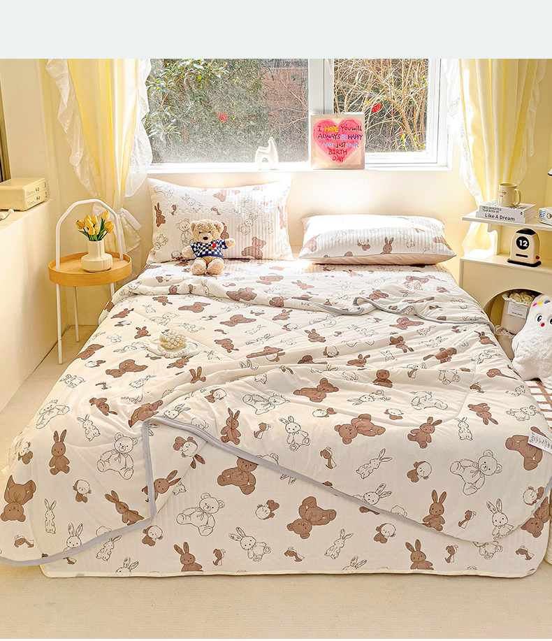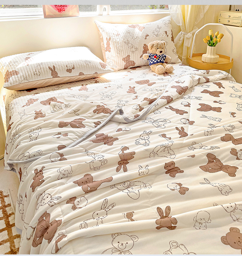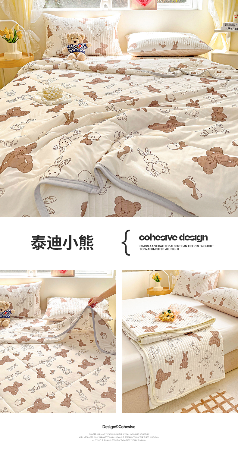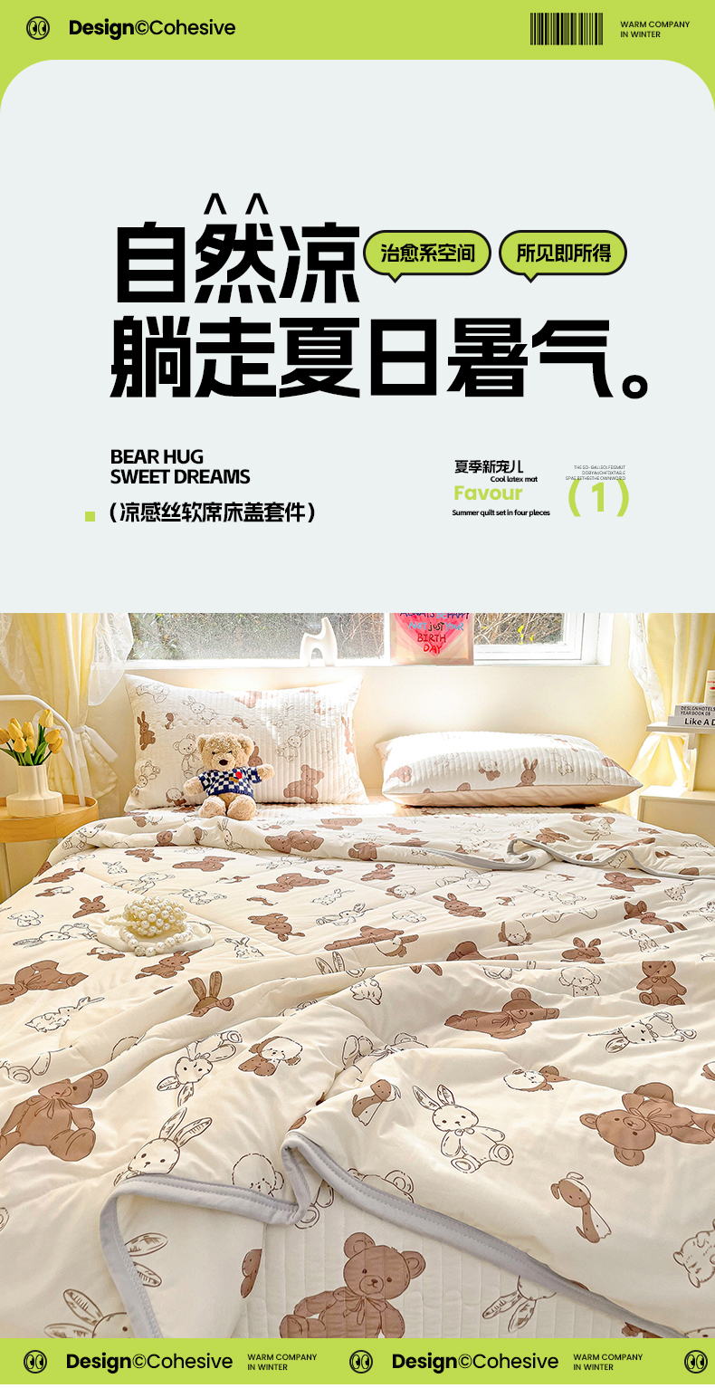 • 91家纺网 家纺一手货源 找家纺 澳梵家居 2024新款凉感丝软席软凉席床盖夏被四件套件 泰迪小熊