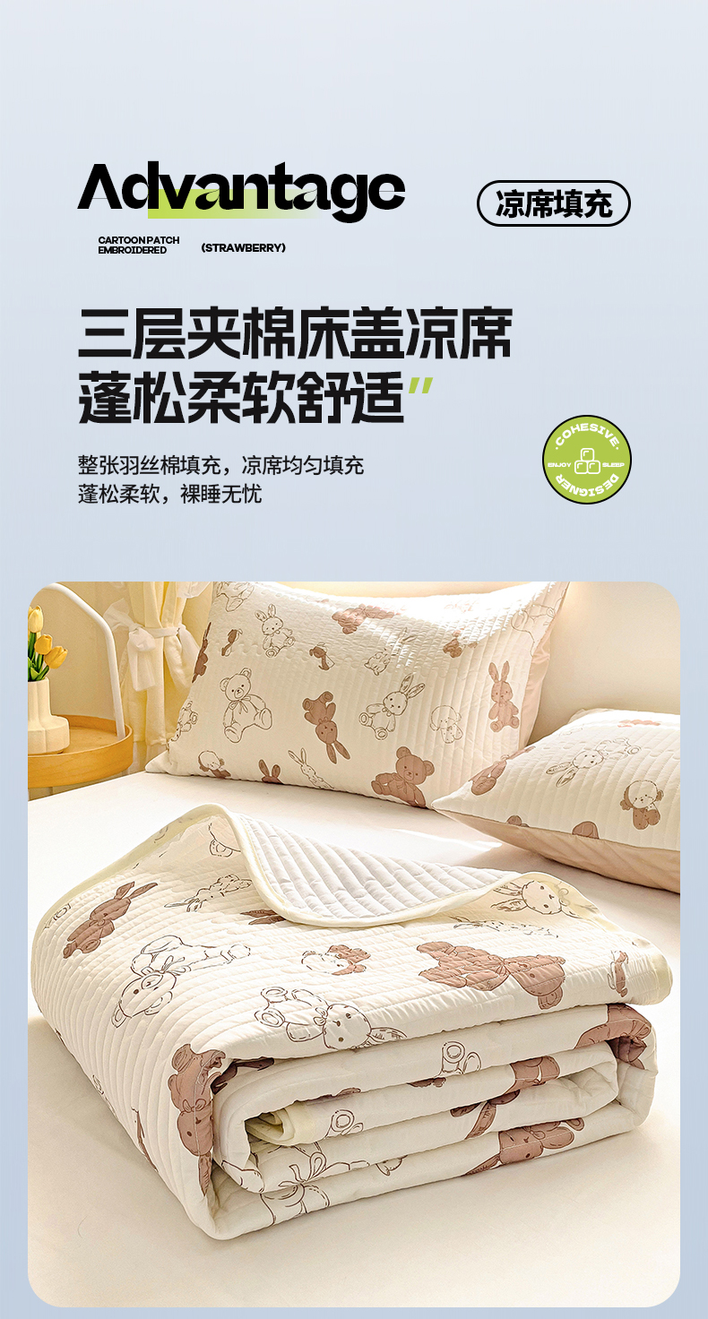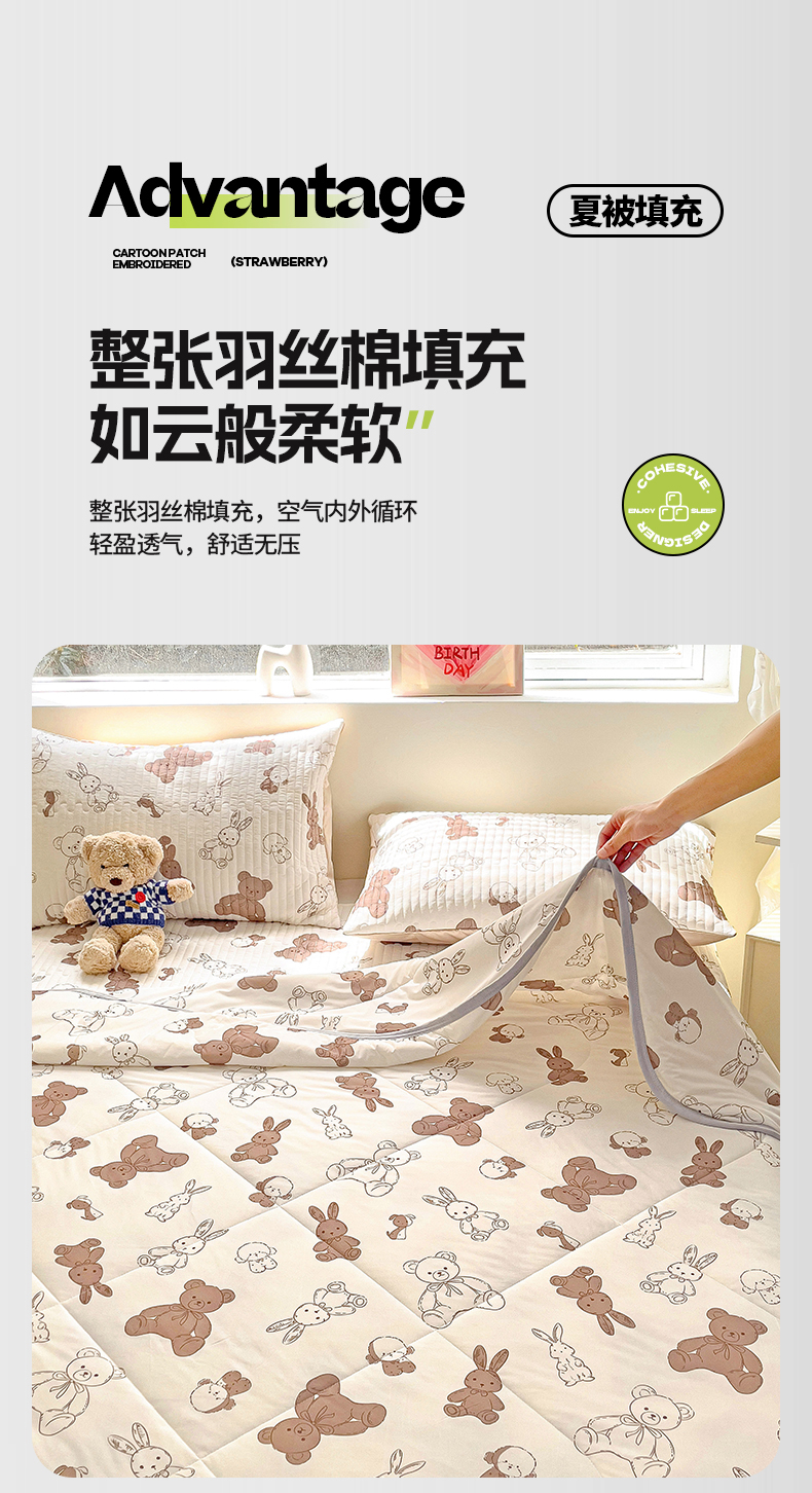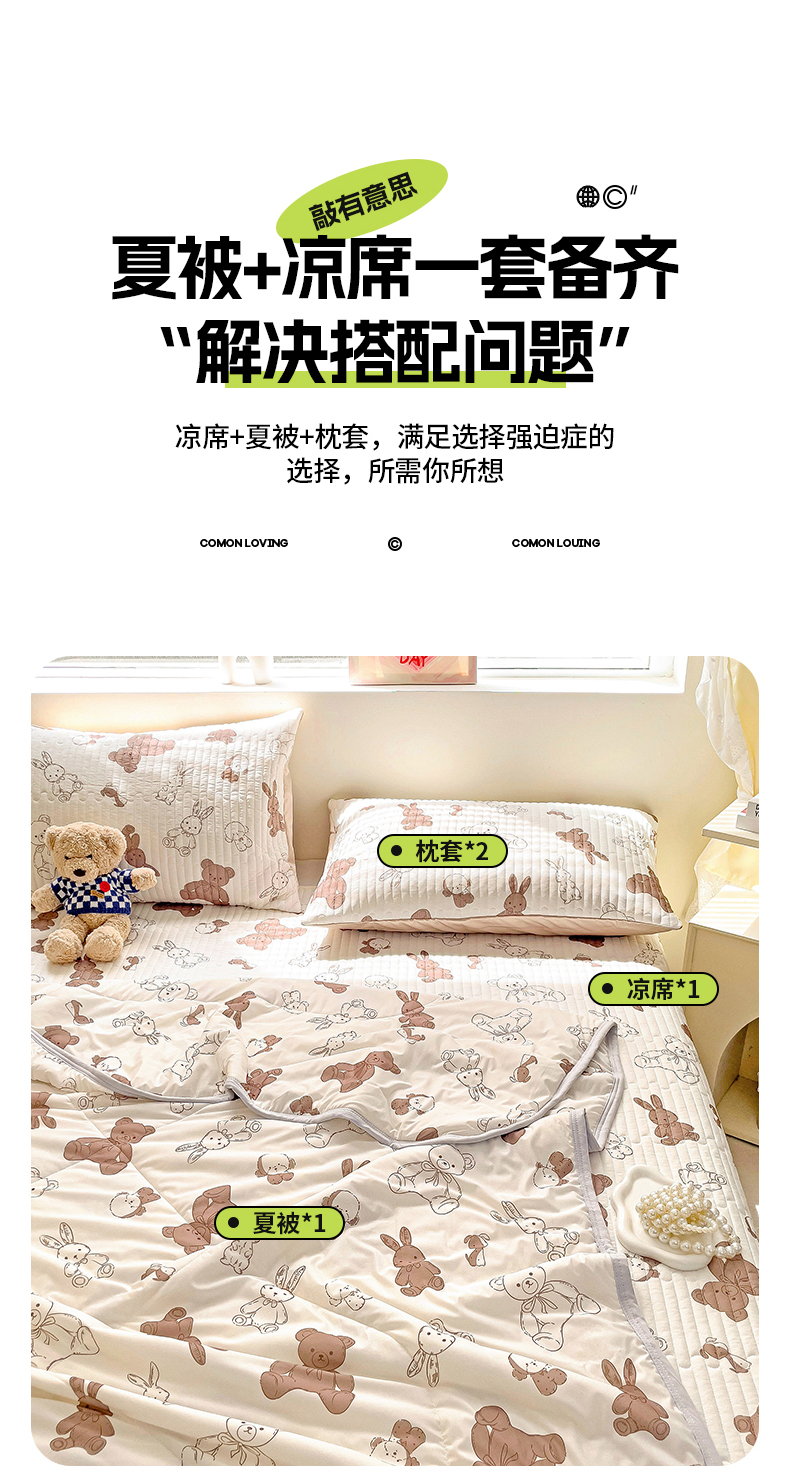 • 91家纺网 家纺一手货源 找家纺 澳梵家居 2024新款凉感丝软席软凉席床盖夏被四件套件 泰迪小熊