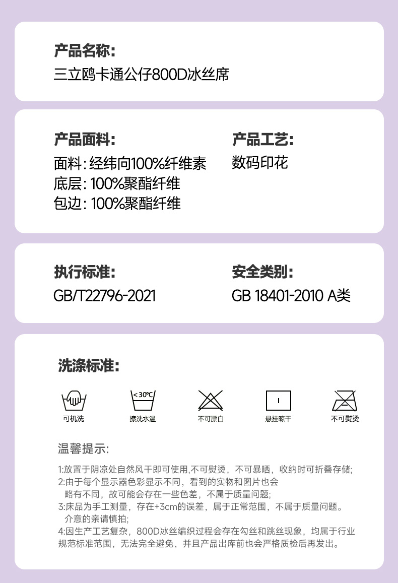 商品名称:(总)宝贝优选2024年新款高精加密三丽鸥7A抗菌冰丝凉席儿童凉席
