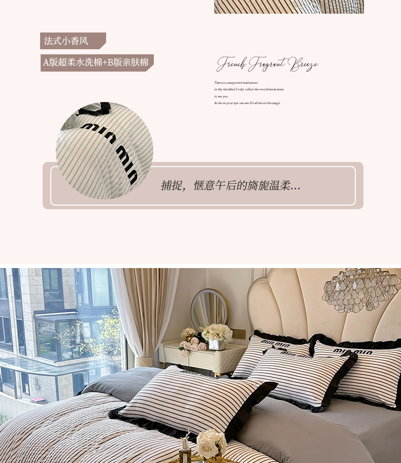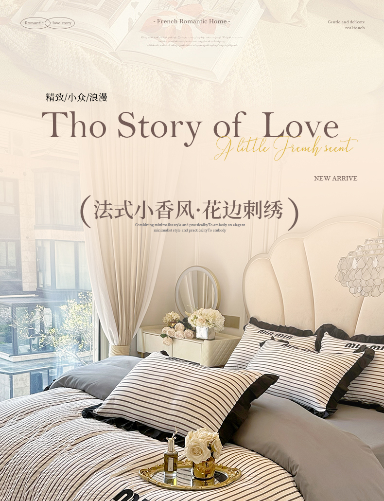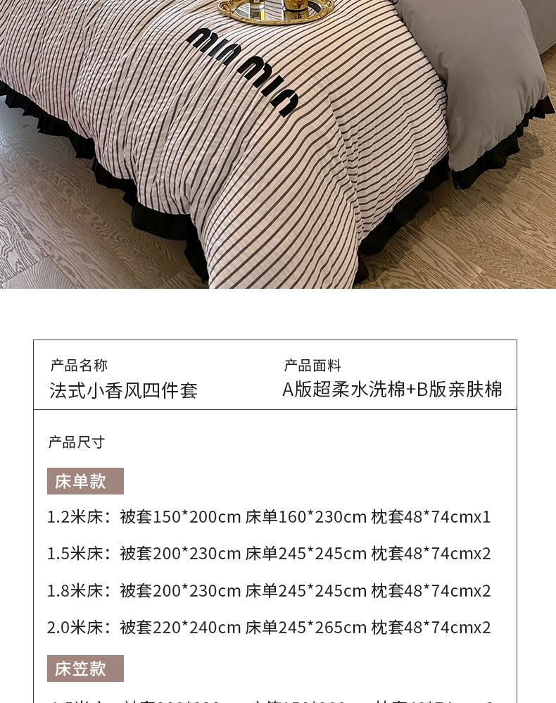 商品名称:苏源家居 2024新款法式小香风系列亲肤棉四件套 小香风-高级灰