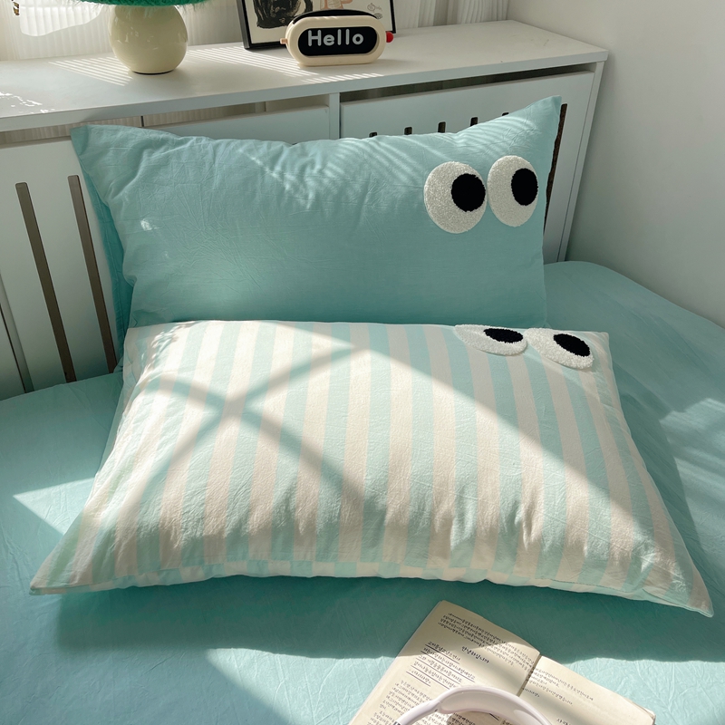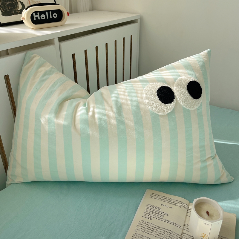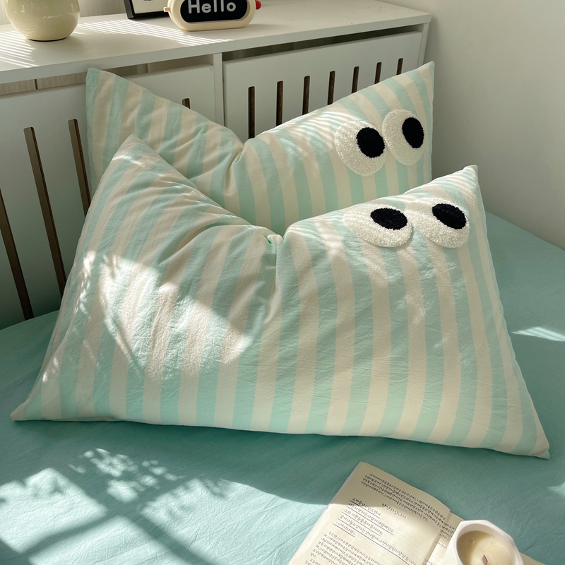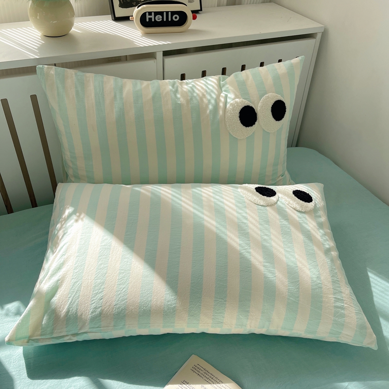丽涵家纺 2024新款全棉色织水洗棉单品枕套-毛巾绣大眼系列 48*74cm枕套/只 ins混搭3-宽条绿